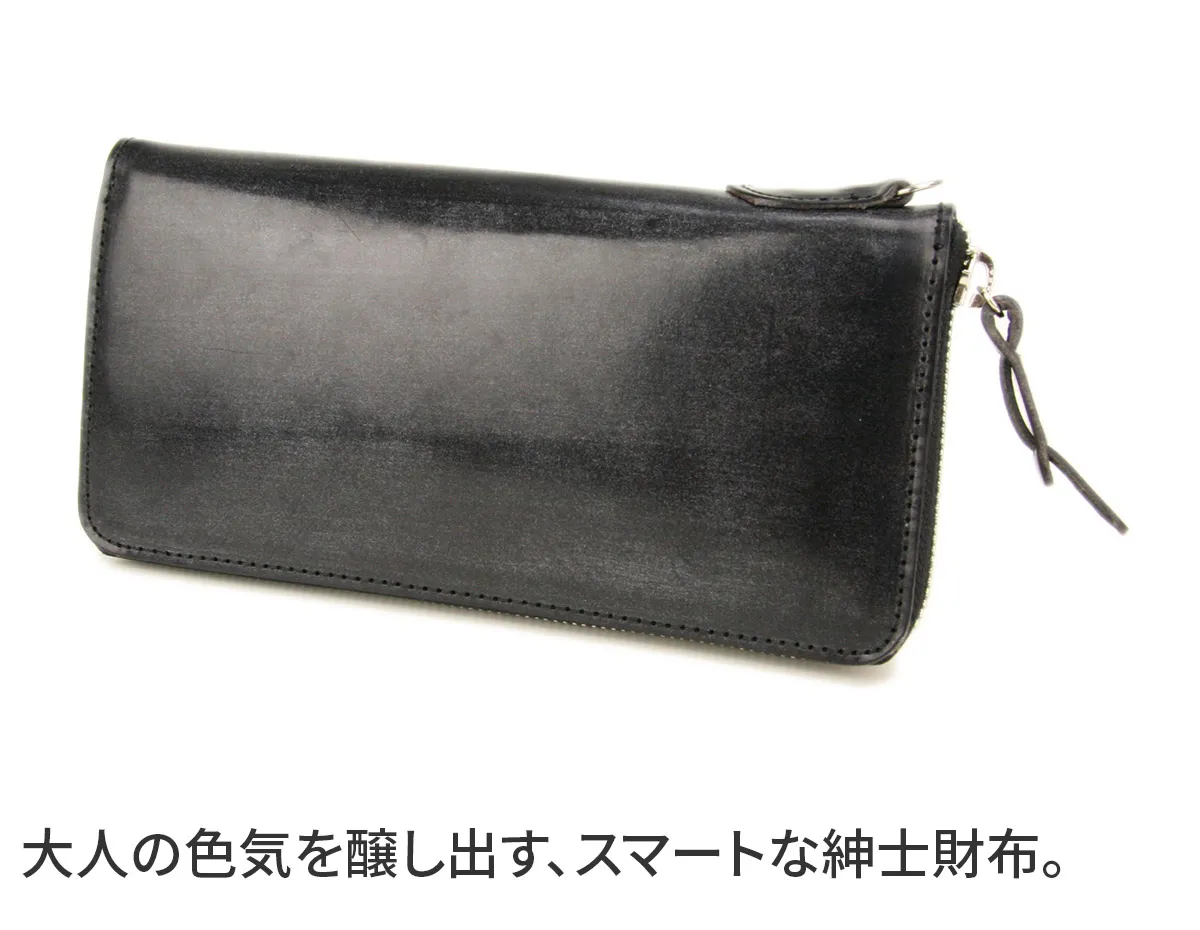 落ち着きのある光沢感、シンプルながら高貴さを感じさせる皮革が印象的。カード、紙幣、小銭をまとめてスマートに持ち歩くことの出来る利便性の高い長財布です。もちろん機能性も充実しており抜群の収納力を発揮します。ハイクオリティのブライドルレザーが、大人の色気を引き立ててくれる非常に贅沢な逸品です。 素材には、馬勒を作るために作られた強靭なBridle Leatherを使用しています。イギリス紳士を想わせるこの皮革は、デザインに余分な翻弄さを許さず導く様に形が姿を現したという印象です。Bloom(ブルーム)からはじまる若さと強靭・硬質な時期からブルームが取れ、馴染み、傷つき、ツヤを増し、使い込まれメンテナンスを繰り返す時間の中でも、色艶は気品を失わず静かな貫禄をたたえはじめます。