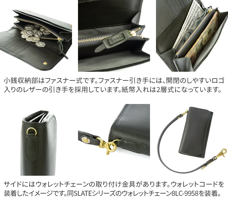 左利きの方の為に考案されたデザインの長財布です。 ポケットの配置からファスナーの開閉方向まで、既存の仕様とは逆さに配置されており、左利きの方にもノンストレスで使用して頂くことができます。抜群の収納力でかさばりがちなカードもまとめてスマートに持ち歩くことが出来る逸品です。 スレートシリーズは使い始めてすぐに実感できるほど艶が出やすく、色も深みも増していきます。わざとホックのアタリをだしたり、ステッチの色を濃くしたりと使ってからの配慮が施されています。まさに、使用していく中で完成してゆく財布です。