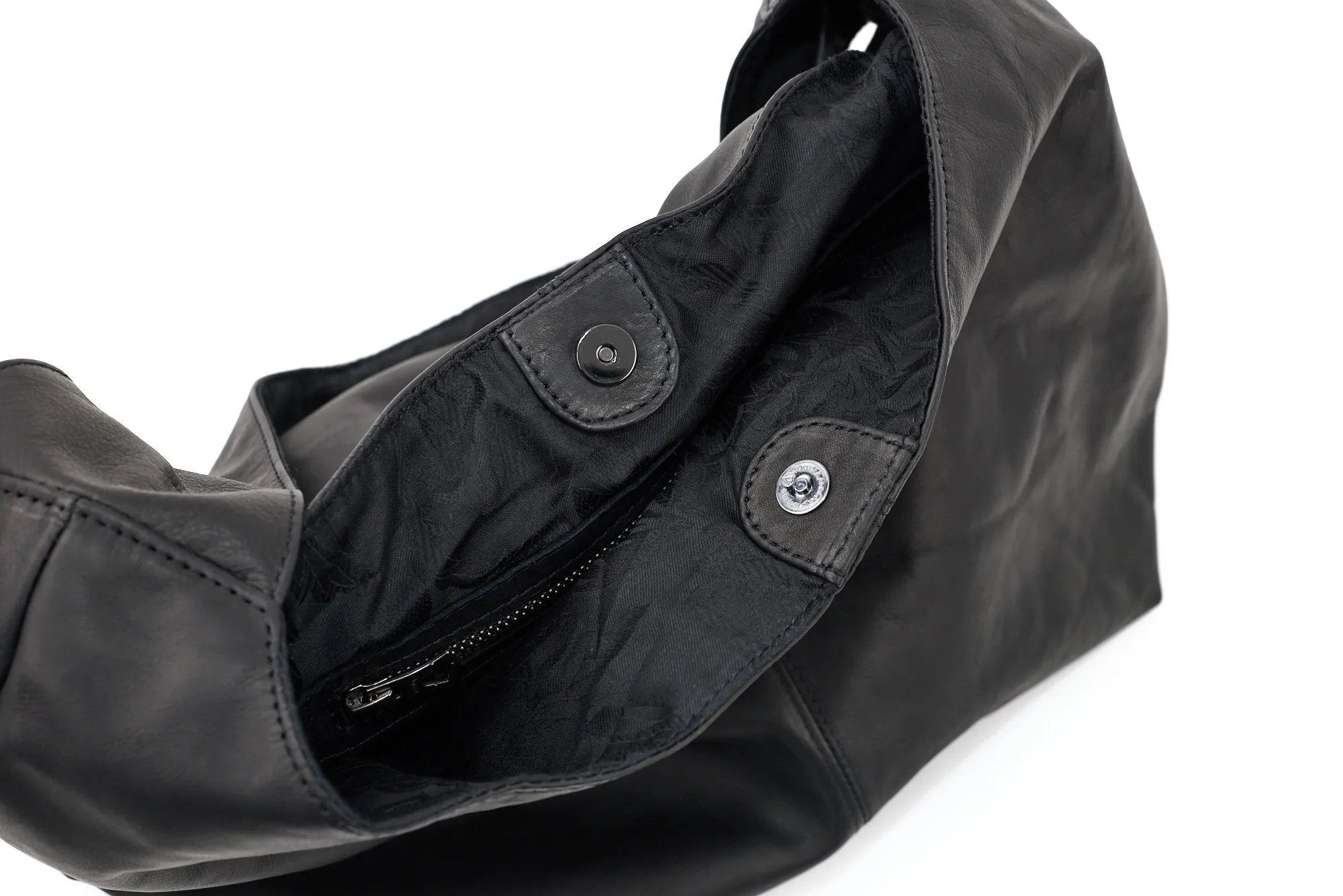 このトートは、レザーの柔らかな表情と軽さのバランスがとても良いモデルです。ライトレザーを採用しているため、見た目はしっかりレザーバッグなのに、持ってみると想像以上に軽いのが印象的。 素材には撥水性の高いインパーマレザーを使用しているので、雨の日でも気にせず使えるのも嬉しいポイント。レザー特有の気遣いを少し減らしてくれる素材です。 革の落ち感がきれいに出るデザインで、肩に掛けたときのシルエットも自然でこなれた印象。カジュアルな装いはもちろん、モード寄りのスタイルにも相性が良く、男女問わず取り入れやすいバッグに仕上がっています。