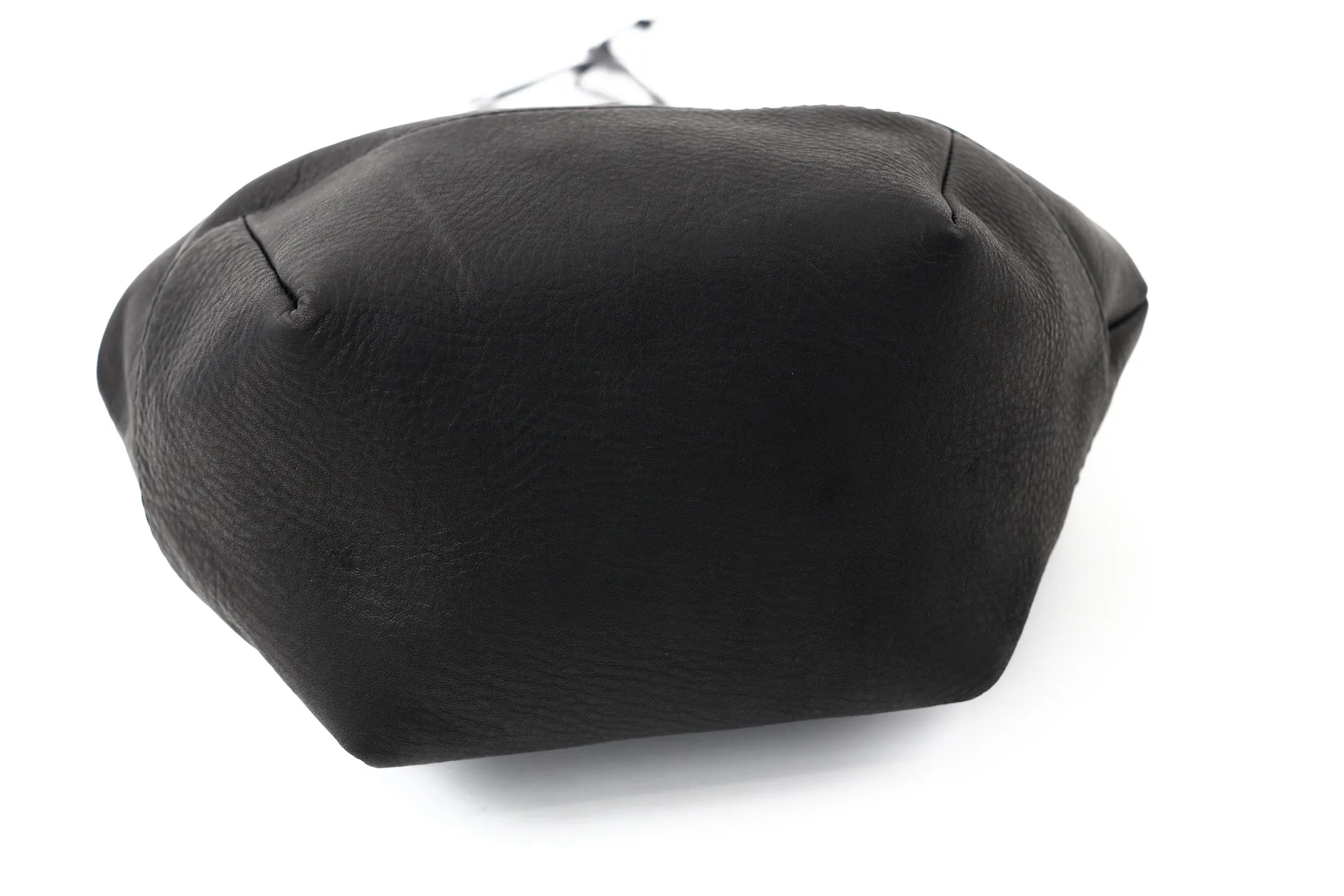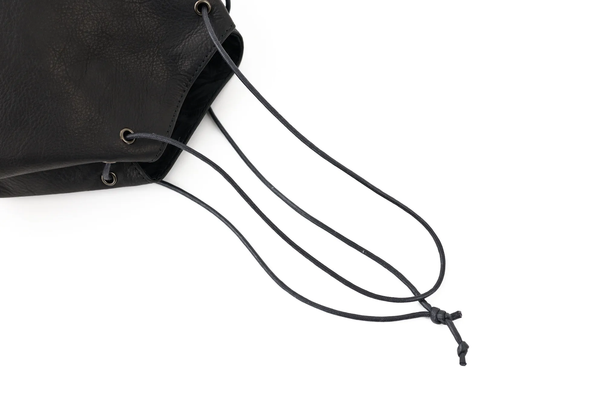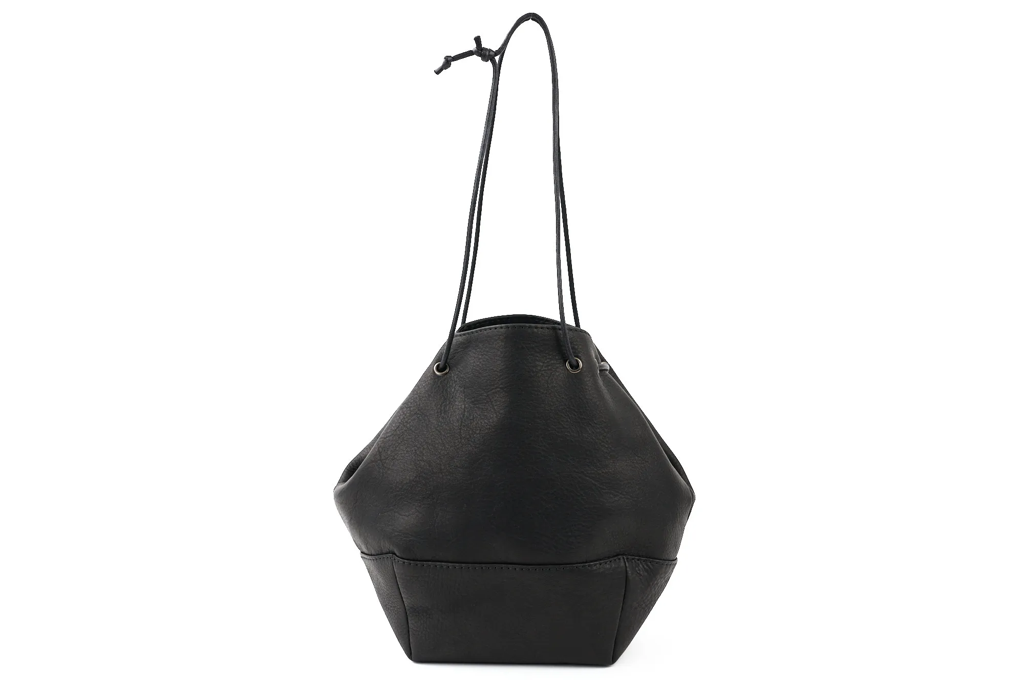 巾着バッグのラフな雰囲気と、レザーの上質感がうまくバランスされたモデルです。インパーマレザーは柔らかくしっとりした質感でありながら撥水性が高く、天候を気にせず使える実用性も魅力。 台形をベースにしたフォルムは見た目がすっきりしていて、巾着特有のカジュアルさを程よく抑えた印象。A5サイズが丁度収まるサイズ感で、必要な荷物がしっかり収まりつつ、スタイリングのアクセントとしても活躍します。 ロウ引きコードのショルダーは長さ調整がしやすく、手持ちと肩掛けの使い分けができる点も便利。シンプルながら存在感があり、男女問わず取り入れやすいバッグです。