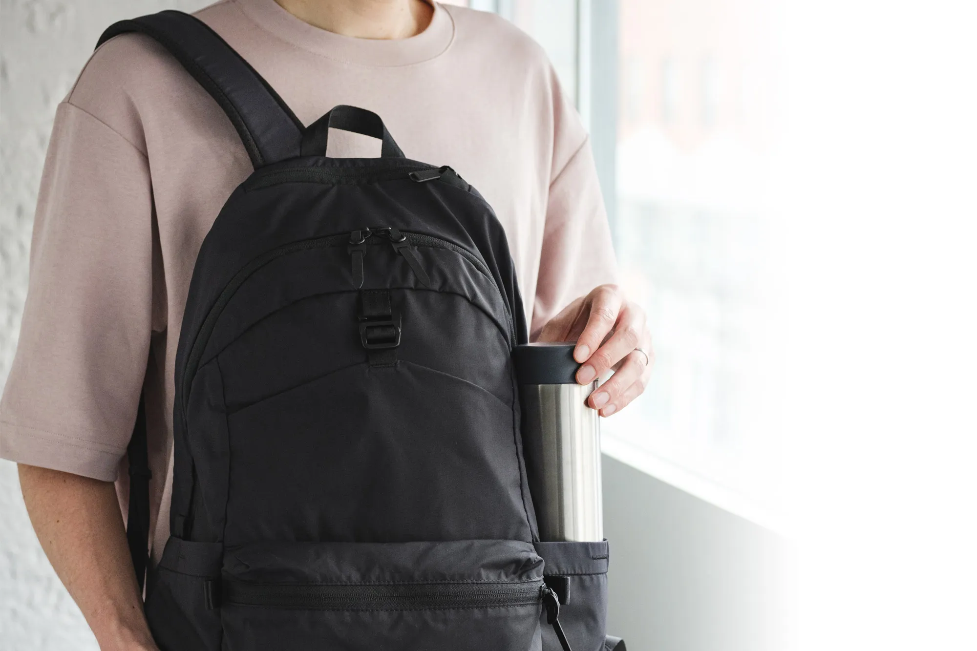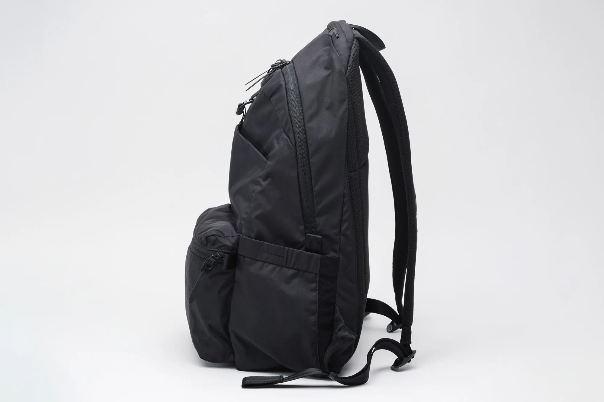 極薄のCORDURA NYLONを使用した、耐久性が高く軽いバックパック。 なんとこちらのバッグは“パッカブル”仕様になっており、フロントポケットに本体を畳んで収納する事が可能です。 旅行や出張時、お使いのリュックなどに入れておけば、出先でのサブバックとしてもご使用いただけます。 さらにメインルームには13インチのPCタブレットスリーブを完備。 パッカブルといえども、十分すぎるほどの収納力を備えたアイテムになっています。 ショルダーパットは折りたためるギリギリの厚みの芯材を採用。 一般的なパッカブルタイプのバックには芯材は入っておりませんが、芯材を入れる事で背負った際の身体への負担が軽減されます。 機能性はもちろん、素材やディテールにもとことんこだわったバックパックになっています。