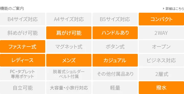 キャパシリーズを防水革に置き換えた雨天時にも安心のシリーズ。 革の風合いに合わせたマットブラックの金具がポイントです。 傘マークの素押しデザインでいつでも雨対応であることが分かるところにもこだわったデザインとなっています。 ほどよく艶感のある上品な撥水レザーを使用したリュックです。丸みの帯びたフォルムが印象的で、オンオフ問わずお持ちいただけるデザインになっています。内側・外側ともにポケットを完備しており、乱雑になりがちな小物類などを整理しながらお使いいただけます。