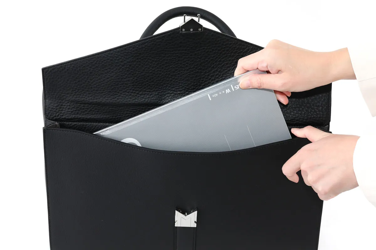 干場義雅氏の要望をつめこんだ限定モデル。 クラシックなフラップデザインのブリーフはディティールをこだわりスタイリッシュな仕上がりに。 ソフトなレザーの質感ながら自立もし使いやすく、フラップポケットはスマートフォンやお財布など出し入れが多いアイテムの収納に便利です。