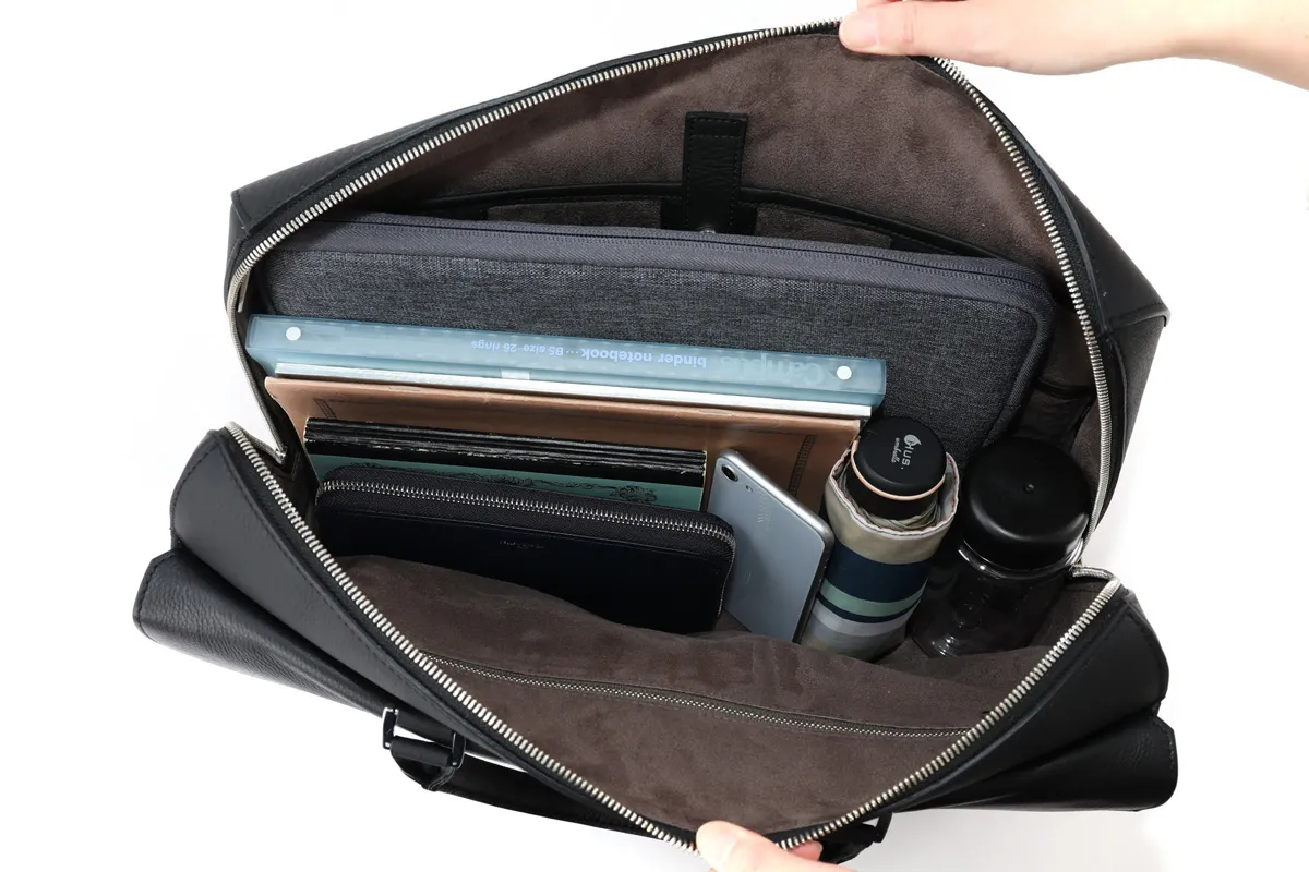 ファーストタッチから肌に馴染む高級感のあるフルグレインレザーを贅沢に使用したバッグです。 普段のスタイルもワンランク上がる、周りと差が付くアイテムです。 B4サイズの書類が収納できるので、ビジネスシーンでも活躍します。