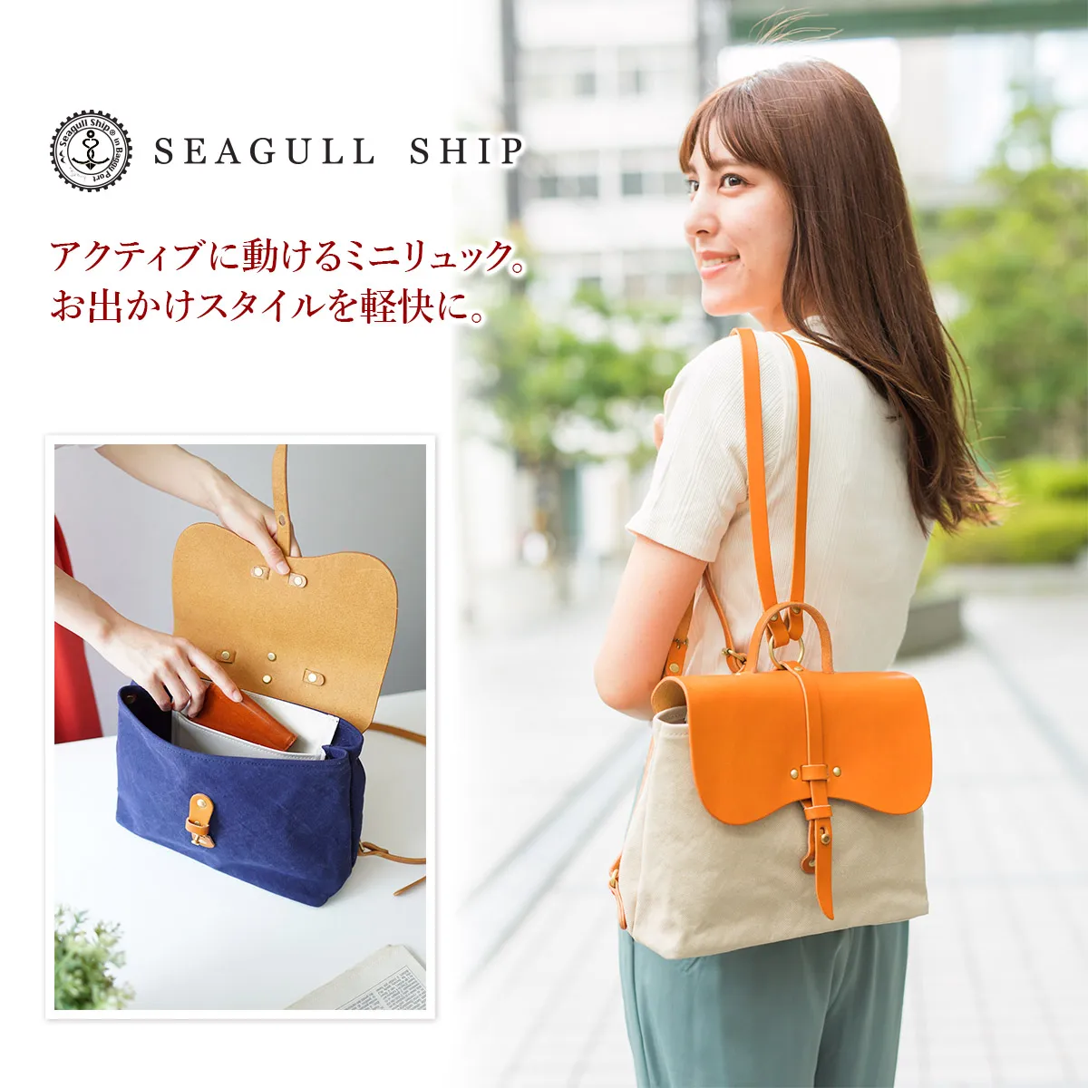 SEAGULL SHIP(シーガルシップ) 防水ドゥーマン 防水バイオクロス×栃木レザー サドルミニリュックサック SMIC-018m 休日のお出掛けスタイルや海外旅行にも。 スマートに外出できる便利なサイズ感のリュックサック。