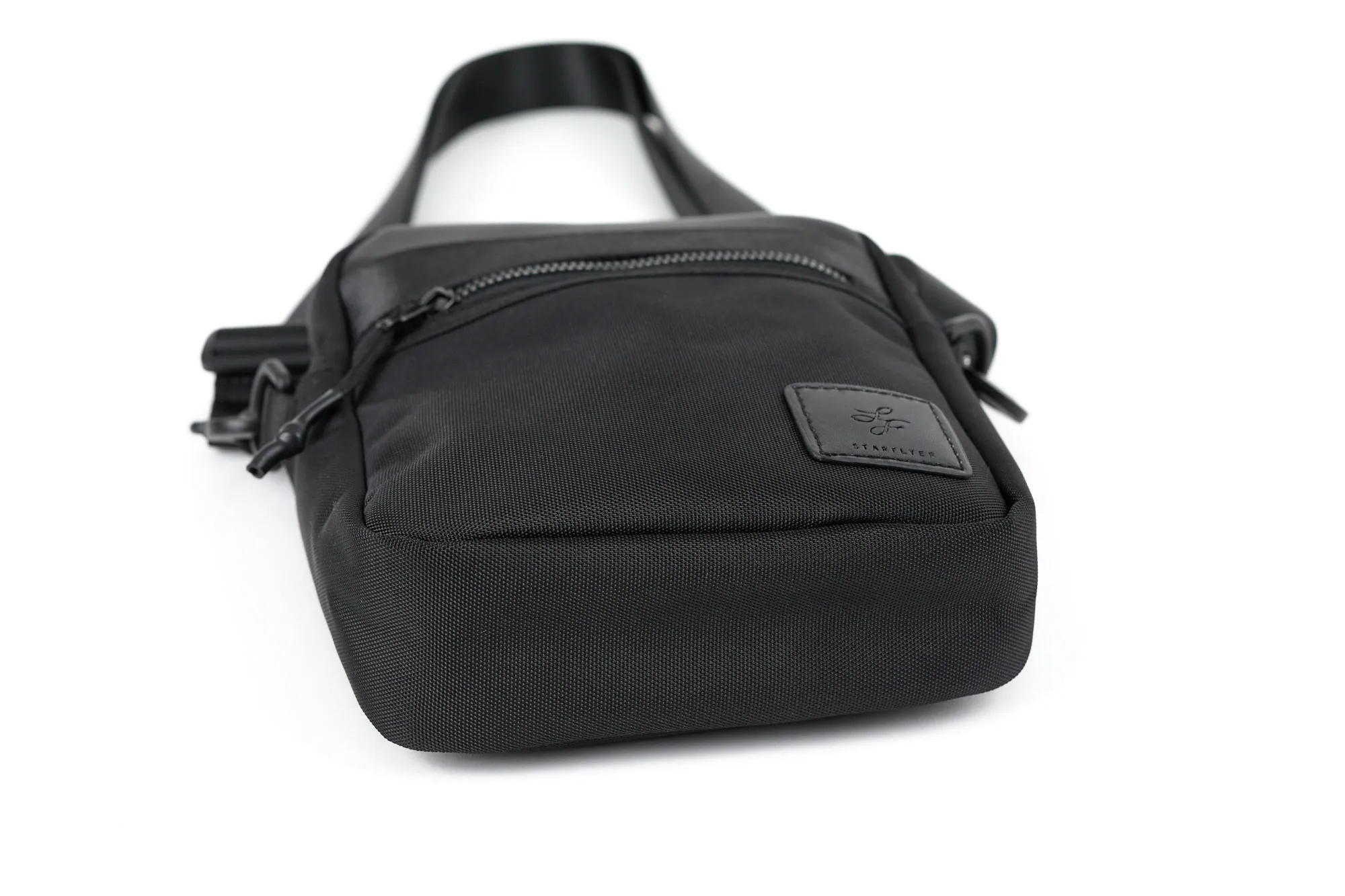 機体や座席シートをブラックで統一し、スマートラグジュアリーという、今までにない価値を提供する、「第3の航空会社」スターフライヤーとのコラボレーションモデル。 今回その第1弾ではブラック1色で、出張はもちろん通常使いにも重宝するトラベル兼用バッグをご用意。 撥水加工をかけてある為ちょっとした雨は気にせず使えて、前面上部には上質な最新機体シートの素材を使用しています。