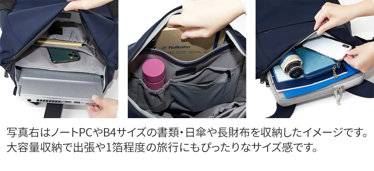 日々の暮らしをより豊かにする機能性に優れた、TRIM(トリム)シリーズ。 整理のしやすさをこだわり抜いた機能的なバッグパックです。 見た目もミニマルで都会的なデザインに仕上げています。 B4サイズの書類やノートPCも収納することができるバックパックです。 撥水性が高く、耐久性にも優れているので、タフにお使いいただけます。普段使いだけでなく、お仕事用としてもお使いいただけます。