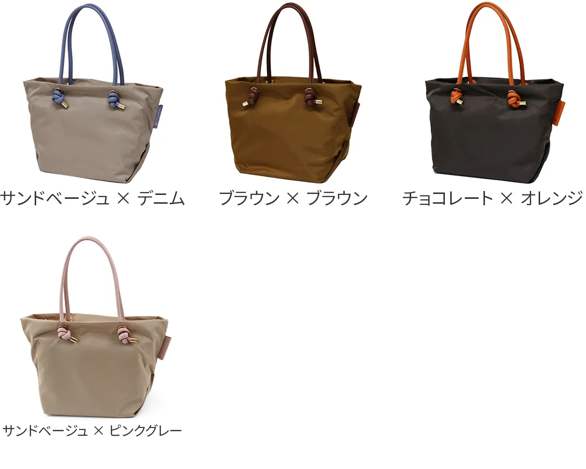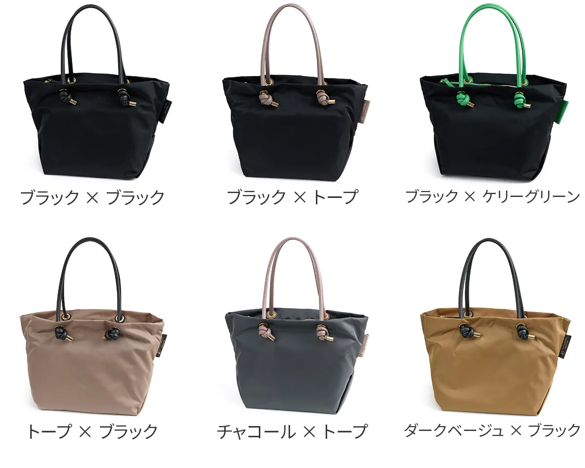 シンプルなデザインですが、ハンドルのカラーがアクセントになった逸品。 前後にあおりポケットがついているため、使用頻度の高い小物を収納でき、取り出しがしやすい仕様となっております。 B5サイズが入る大きさなので、お出かけに必要なものをたくさん収納できるのもポイント。弱撥水性なので雨の日にもお持ちいただけるトートバッグです。
