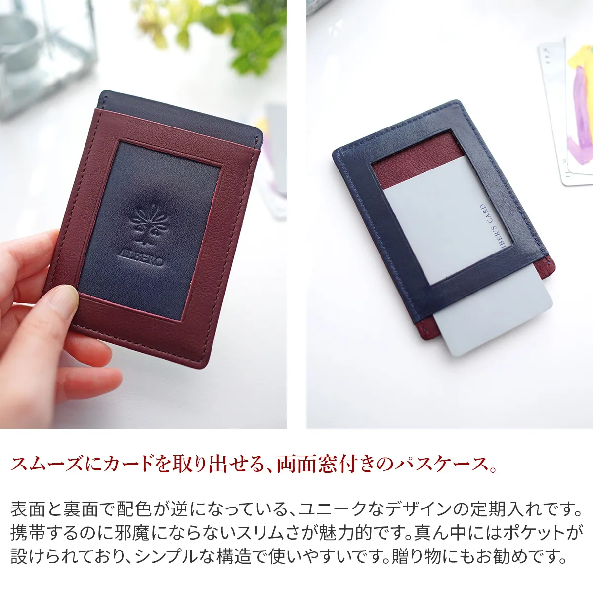 ALBERO(アルベロ) LYON(リヨン) 定期入れ 4361 裏表で配色が異なり、二つの表情が楽しめる 薄マチで携帯しやすいパスケース