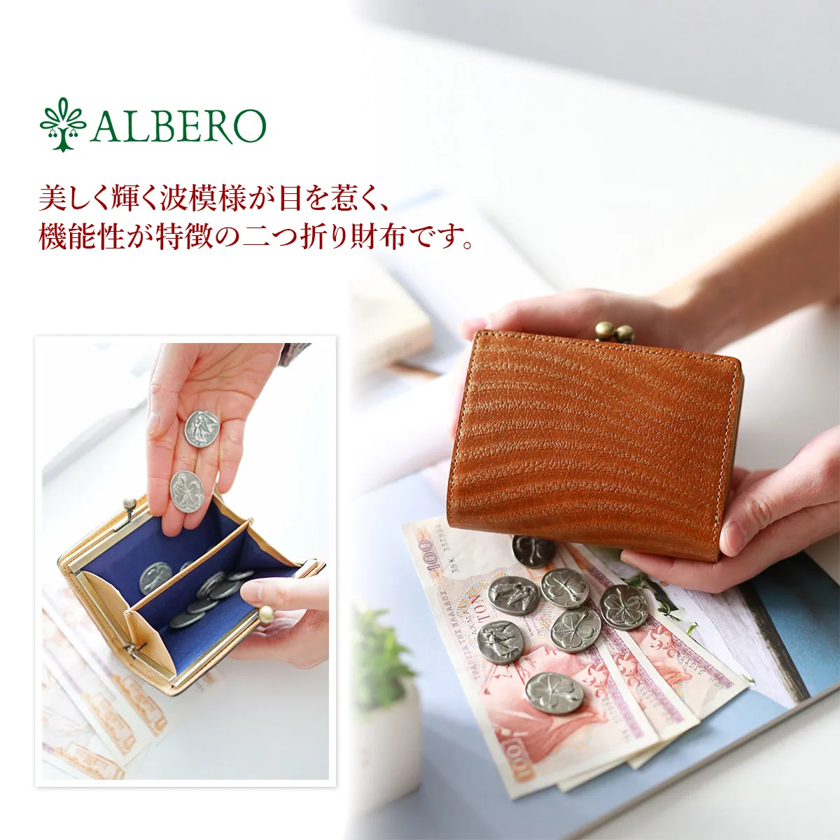 ALBERO(アルベロ) WAVE(ウエイブ) 小銭入れ付き二つ折り財布 4603
