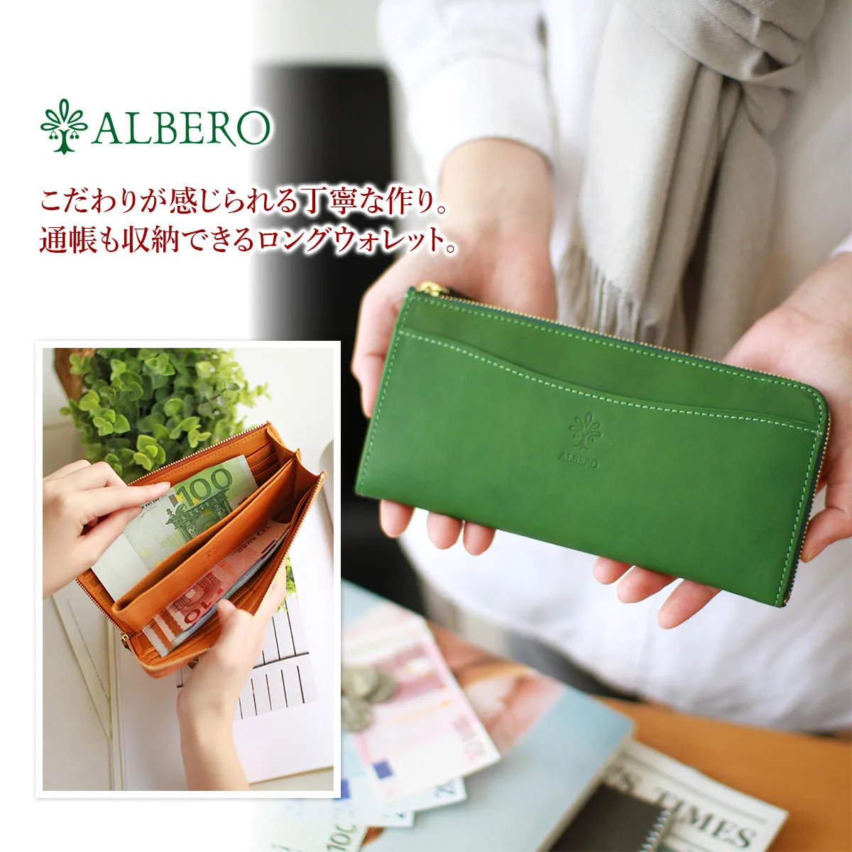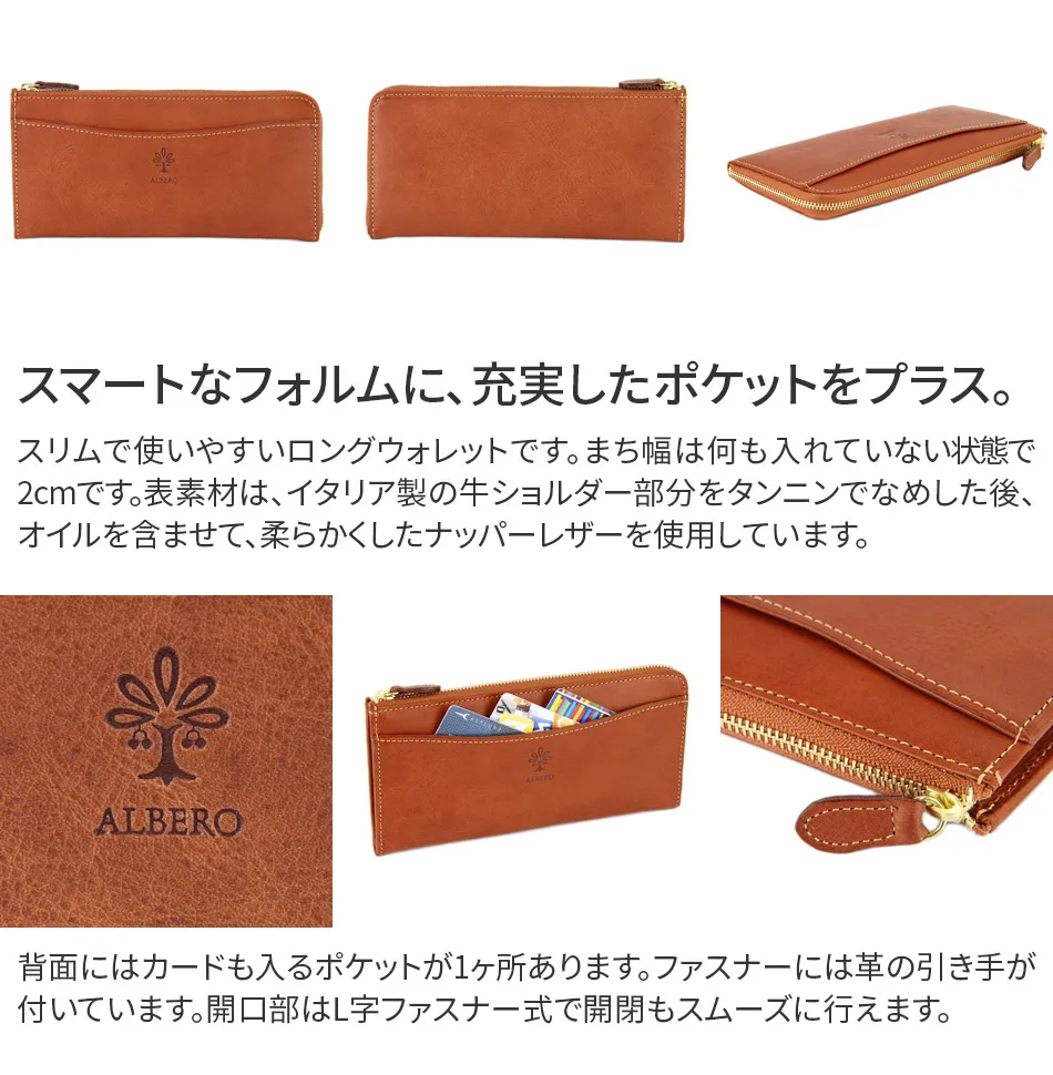 ALBERO(アルベロ) FLETTO(フレット) 小銭入れ付き長財布(L字ファスナー式) 4823 スマートなフォルムに充実したポケットをプラス 1つ1つ丁寧に手作業で丁寧に作られた上質素材の長財布◎