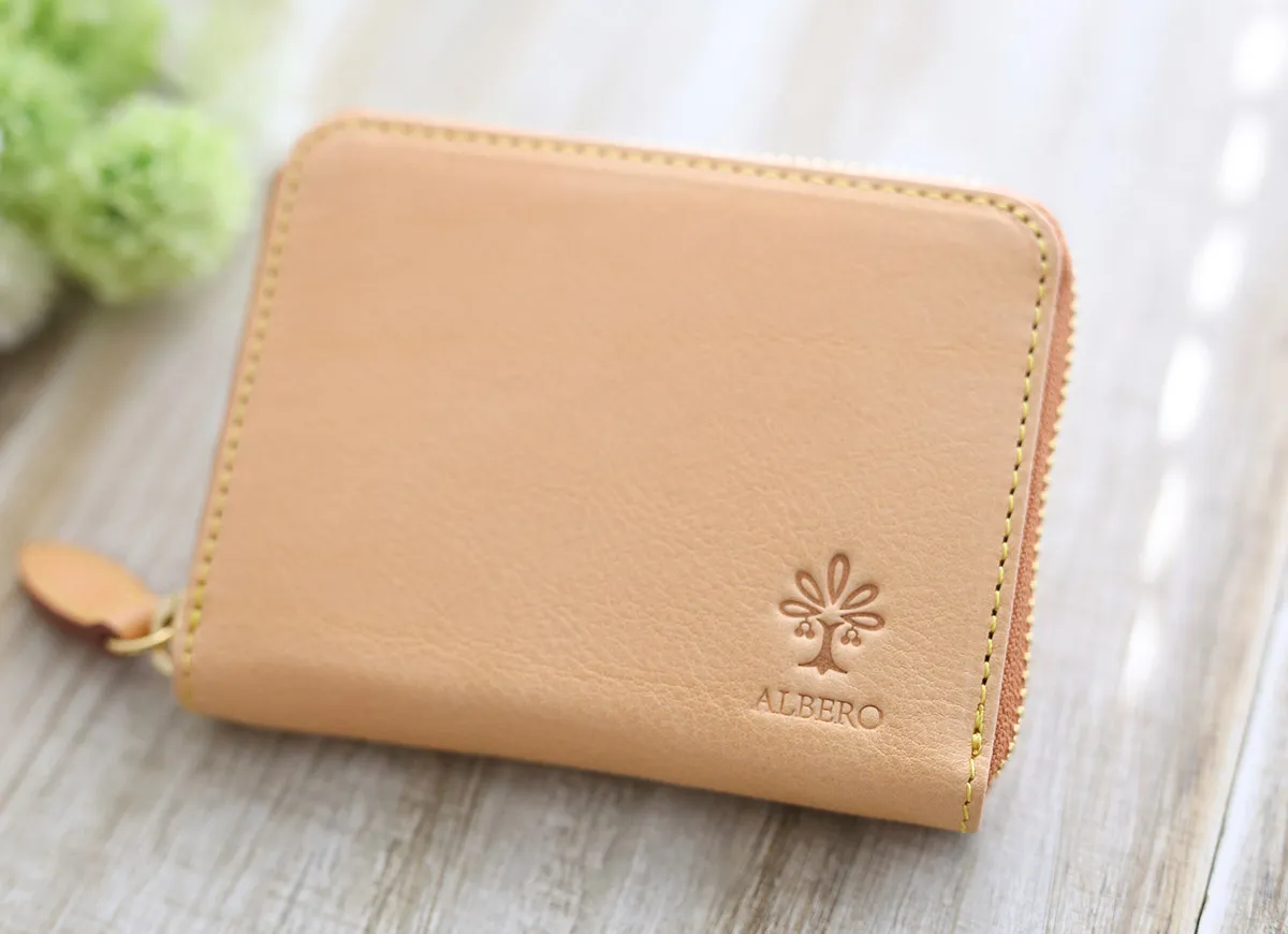 ALBERO(アルベロ) NATURE(ナチュレ) 小銭入れ付き二つ折り財布(ラウンドファスナー式) 5373 手帳のように大きく開き、出し入れ楽々 小さめですがデイリー使いにもぴったり◎