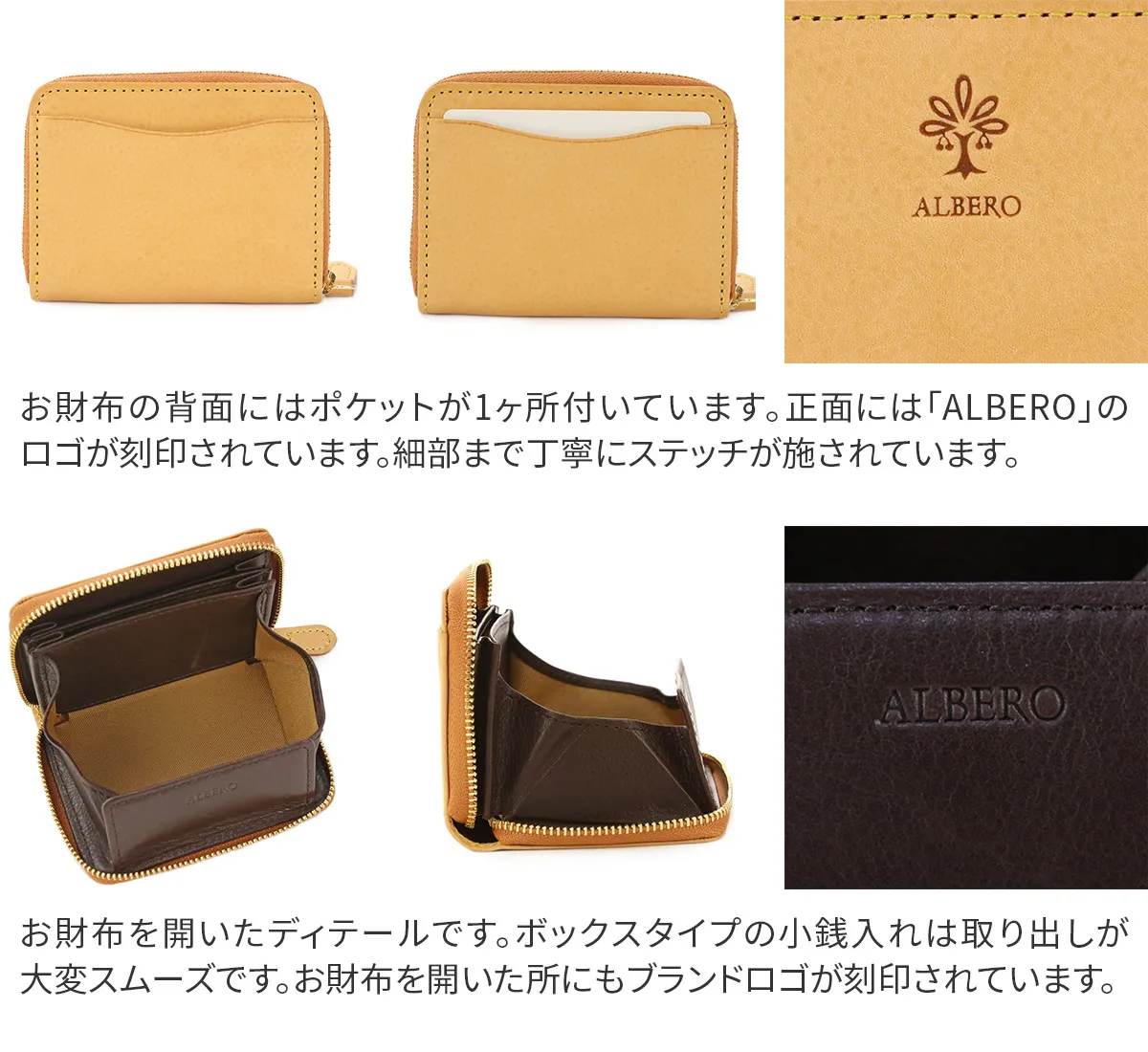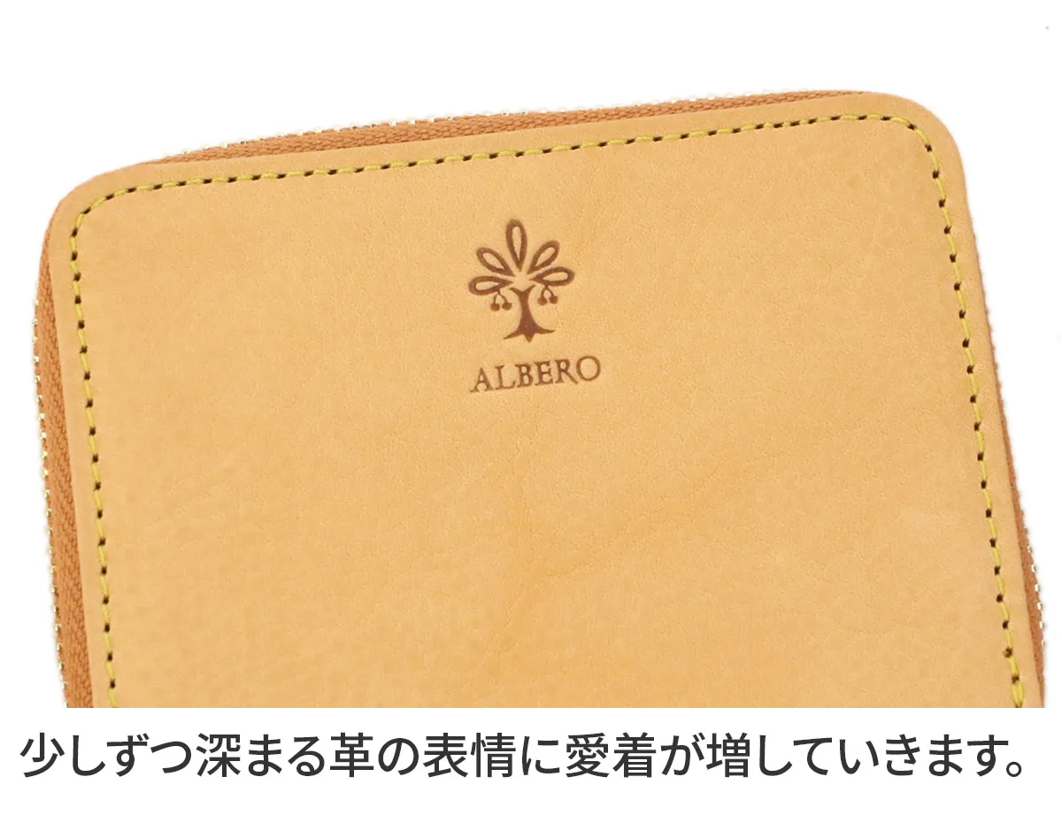 ALBERO(アルベロ) NATURE(ナチュレ) 小銭入れ付き財布(ラウンドファスナー式) 5375 ナチュラルな風合いが美しい、 どんどん愛着が増していくウォレット。