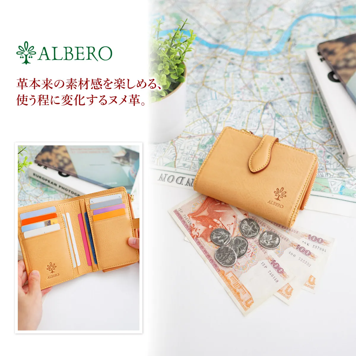ALBERO(アルベロ) NATURE(ナチュレ) 小銭入れ付き二つ折り財布 5407