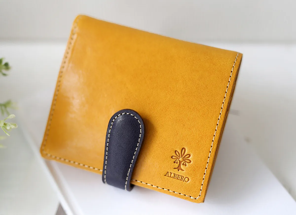 Tamponatoと呼ばれるトスカーナ地方の伝統技法による手染めの革を使用。 光沢としわ感が特徴の牛フロント(背中)部分をタンニンで鞣したソフトなヌメ革。 小ぶりなバッグにも入るコロンとしたサイズ感ですが、お会計がスムーズになるような工夫が施された機能的なお財布です。
