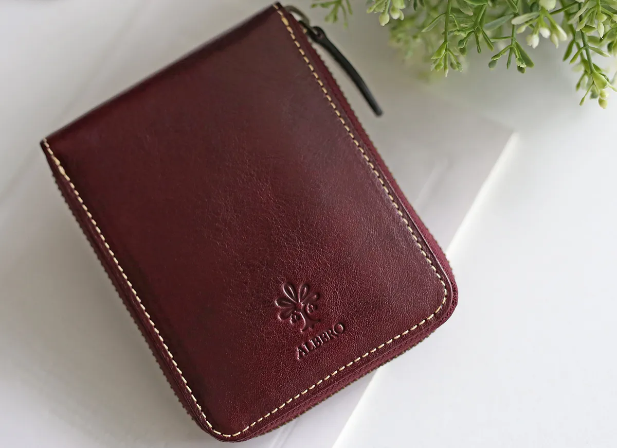 ALBERO(アルベロ) OLD MADRAS(オールドマドラス) 小銭入れ付き二つ折り財布(ラウンドファスナー式) 6525 コインが取り出しやすいBOXタイプの小銭入れ 確かな質感の上質な革を使用したウォレット