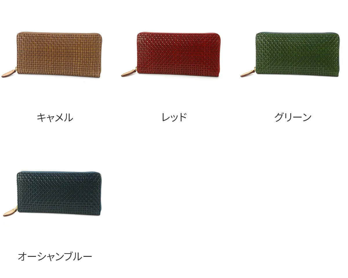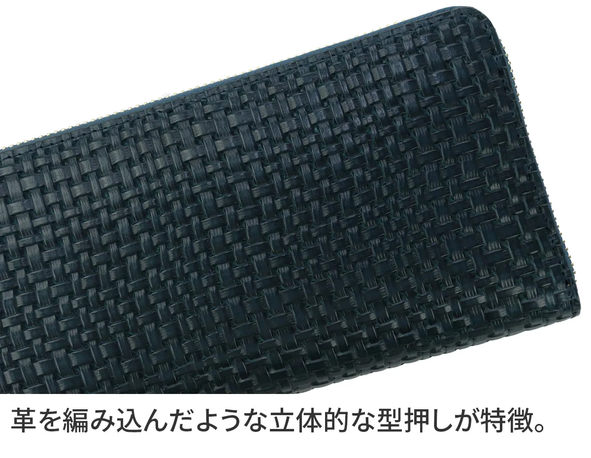 イタリア製牛ショルダーをタンニンでなめし、縄網の様なメッシュ柄を深く型押しをした素材。コバは切れ目を磨き込んだスタイリッシュでユニセックスなニューラインです。 大きく開くラウンドタイプの長財布です。オープンポケットは取り出しやすいマチ付きで、通帳やパスポートも収納可能。お札入れは2ヶ所あるので、紙幣の種類によって分けたり、紙幣とレシートを分けて収納することも可能です。 小銭入れはL字ファスナー開閉で、内部に仕切りが付いています。収納力抜群のラウンドファスナー式長財布です。