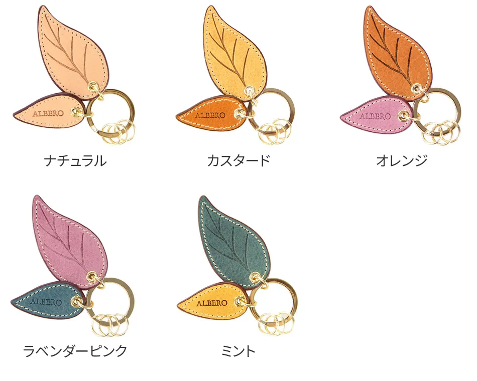 ALBERO(アルベロ) SPIRITO(スピリト) キーリング 8103 レザーで作られた葉っぱのモチーフがキュートな、 手のひらサイズの3連キーリング♪