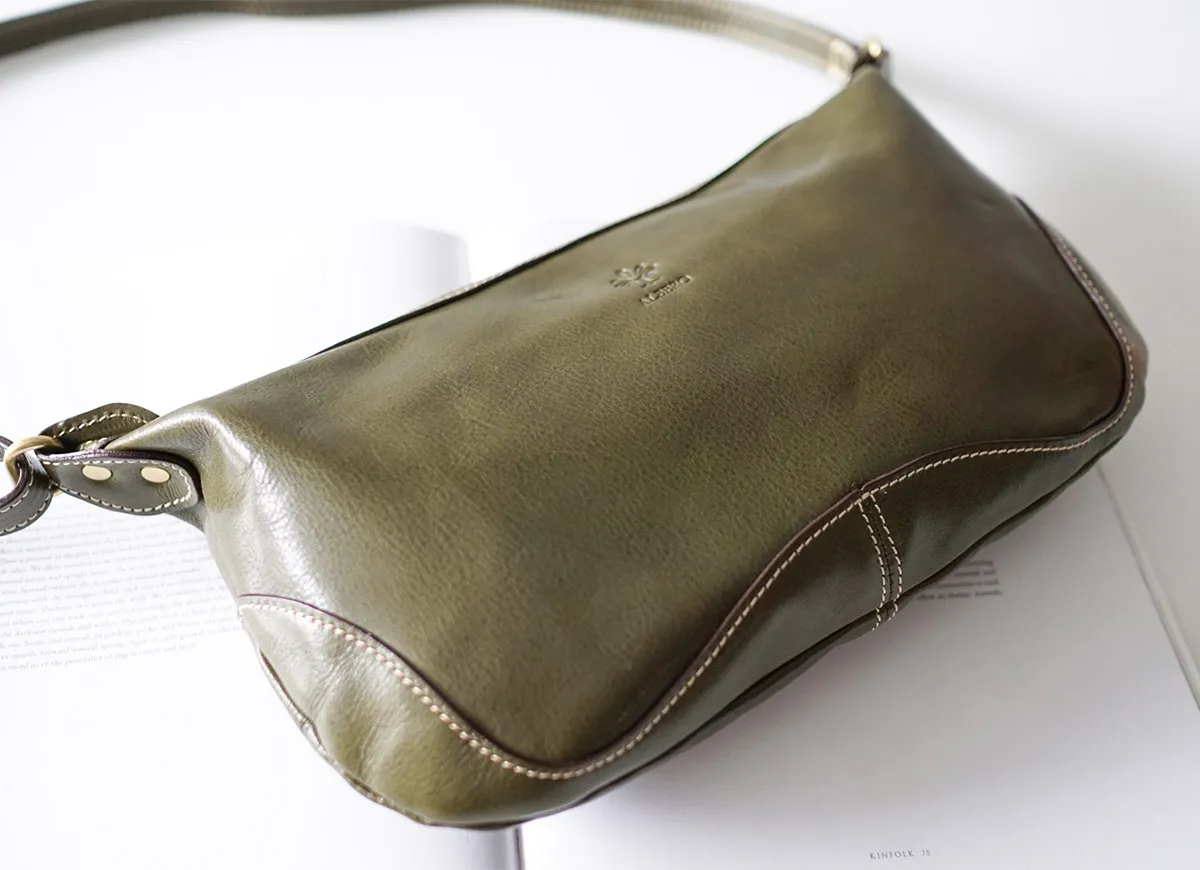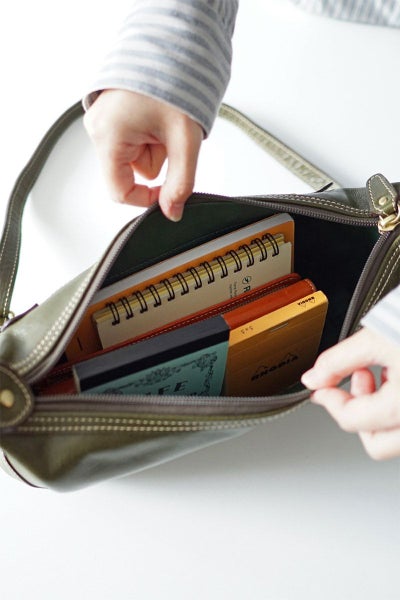 身体にフィット。光沢あるソフトレザーは人にも優しい。 使い込む程に色の深みが増してエイジングも楽しめます。 ソフトなタッチ感とスリムなフォルムで、優しく体に寄り添うミニショルダーバッグです。 横長シルエットは開口部がワイドに開き視認性抜群。底が浅めで中身も取り出しやすく◎ ショルダー紐は最短の60cmに設定すると、肩掛けでお持ちいただけます。 スムースレザーにステッチワークが効いた、小ぶりなサイズ感で上品に持てるアイテムです。