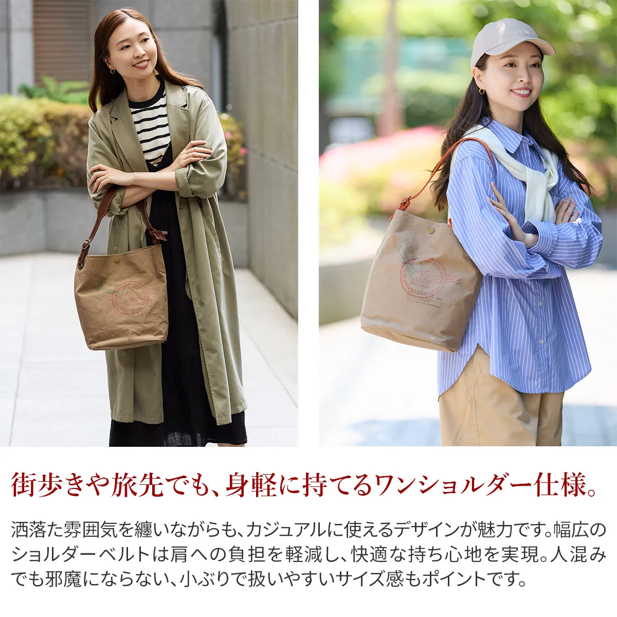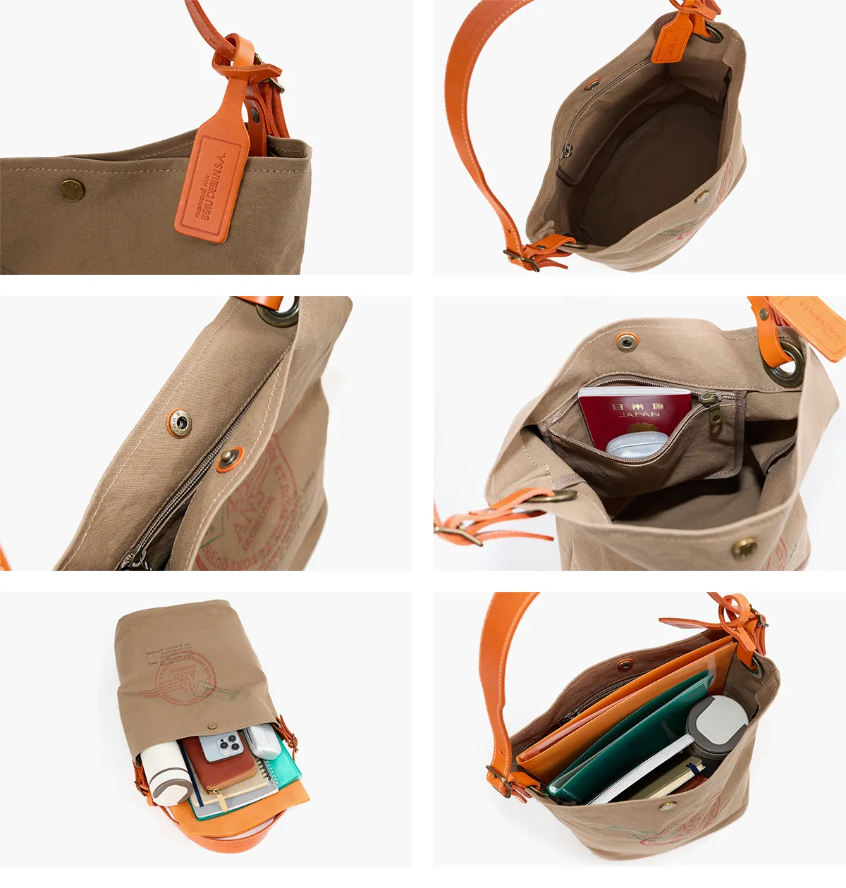 国産のコットンを使用した9号帆布にパラフィン加工を施した風合いたっぷりの帆布を使用しています。 コンビには、丈夫で発色が美しいブッテーロレザーを使用しています。 使う程に深みが増していく帆布と、徐々に柔らかく馴染んでいくブッテーロレザーの表情の変化をお楽しみください。 ボーデッサンの感謝の思いが込められたプリントが、さりげなくポイントになったデザイン。洒落た雰囲気を纏ったカジュアルなワンショルダーバッグです。ショルダーベルトは幅広になっていますので、肩への負担が軽減されます。人混みでも邪魔にならない、小ぶりなサイズ感です。