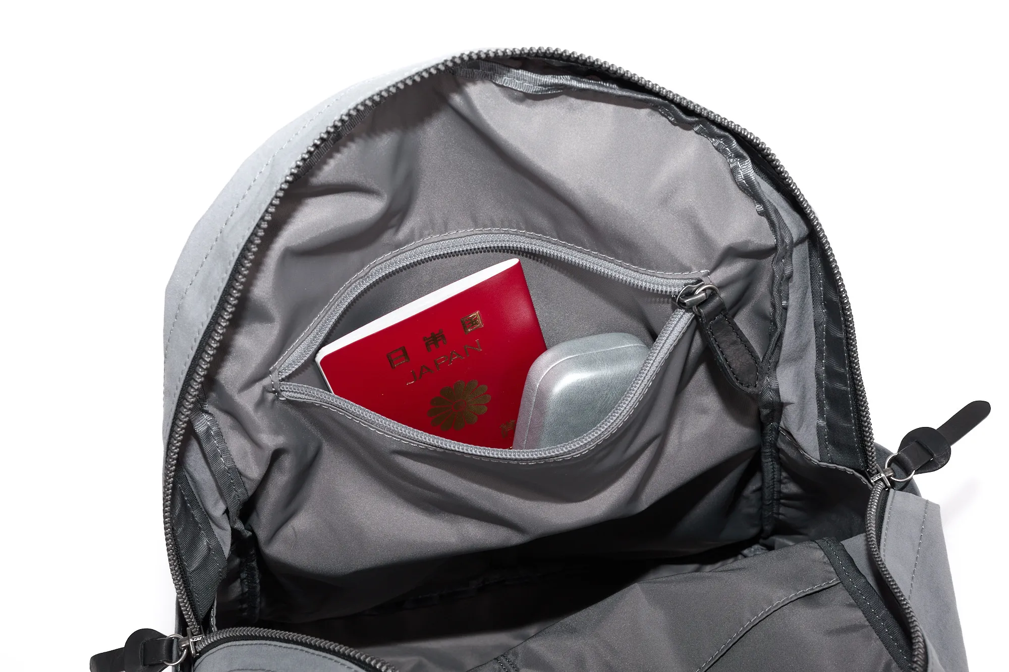 カジュアルなスタイルに合うバックパック。 ポケットが豊富に設けられているので、デイリーからアクティブなお出かけまで様々なシーンでご使用いただけます。 背面にもファスナー開口部が付いており、出し入れしやすい仕様となっております。 内側には、ポケットが豊富に設けられており、ペットボトルホルダーもついているので、バッグの中を整理して収納できます。