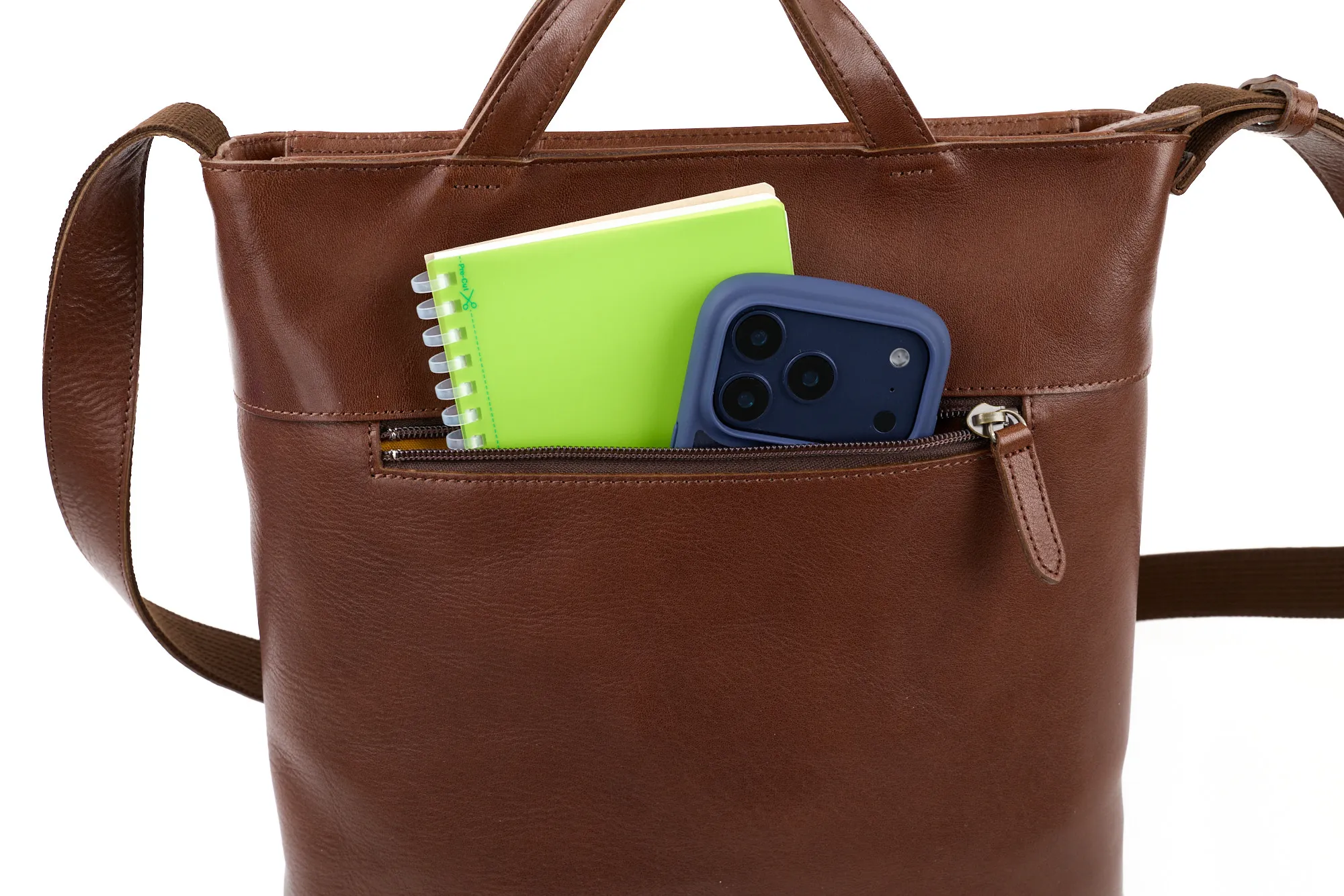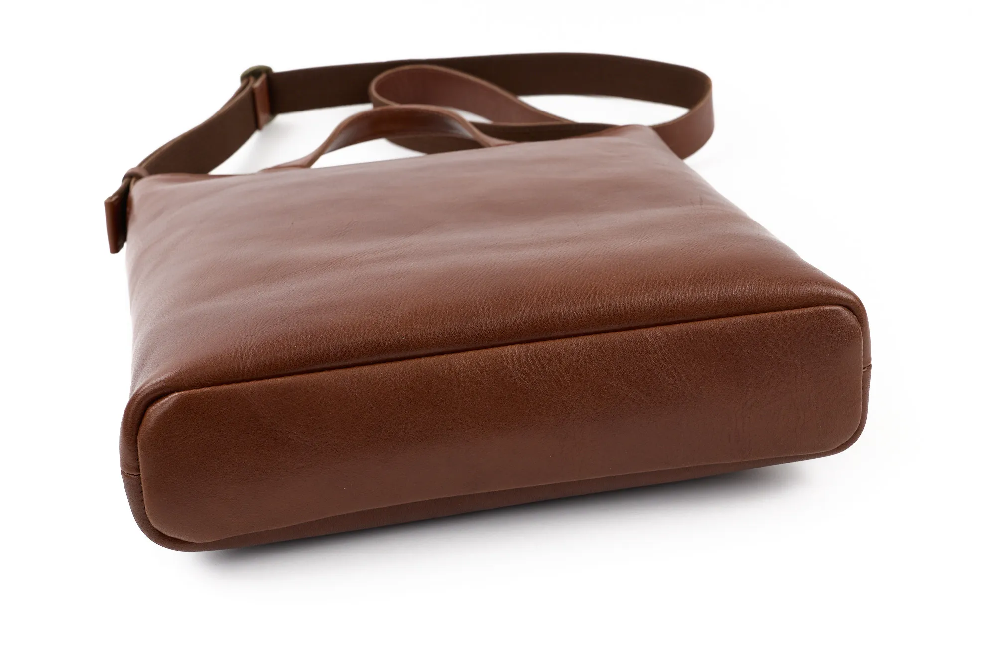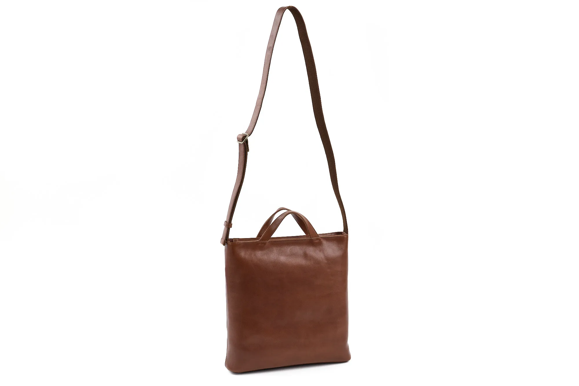 上質なレザーの自然な風合いを活かした縦型ショルダーバッグ。 ボディにはタンニンの割合を多めにした コンビ鞣しの牛革 を採用。革に厚みを残すことで、どこか懐かしさを感じさせる素朴な質感と、使うほどに深まる色艶を楽しめる仕上がりになっています。時間をかけて育つ素材感は、オン・オフ問わずスタイルに寄り添います。 デザインはシンプルでありながら機能性にも配慮。フロントや内装のポケットが日常の整理整頓を助け、コンパクトながら実用的な収納力を確保しています。上質なレザーが持つ存在感が、毎日の持ち歩きをより豊かに演出する逸品です。