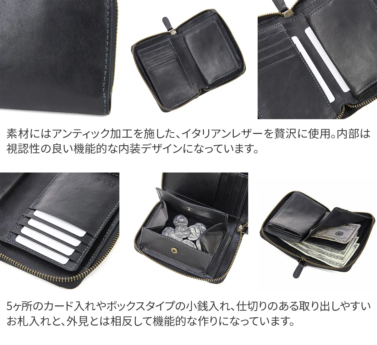 Dakota BLACK LABEL(ダコタブラックレーベル) ガウディ 小銭入れ付き二つ折り財布(ラウンドファスナー式) 0626812(0626802) 収納力も抜群、機能的なコンパクトウォレット。