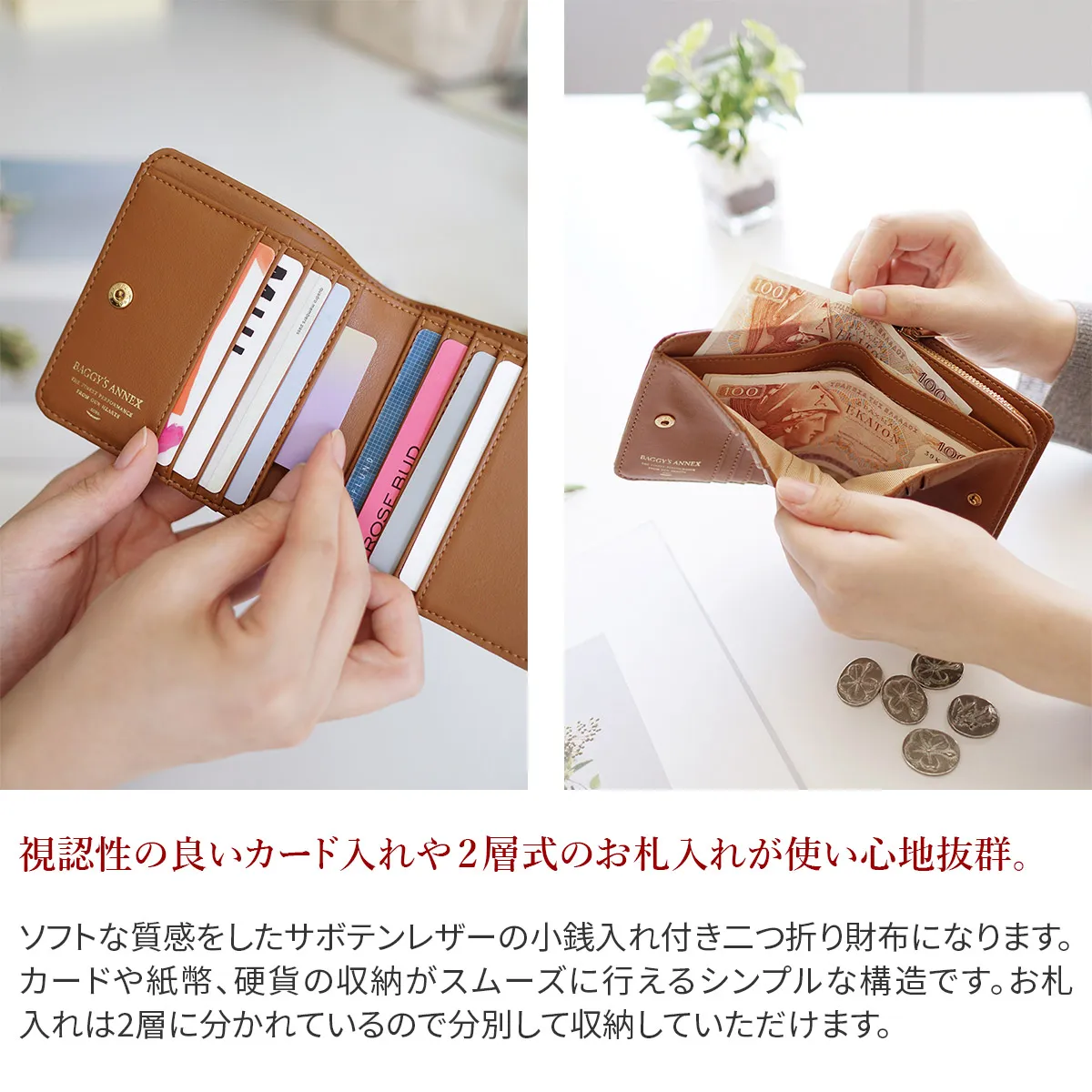 BAGGY'S ANNEX(バギーズアネックス) CACTUS LEATHER 小銭入れ付き二つ折り財布 LZKM-391