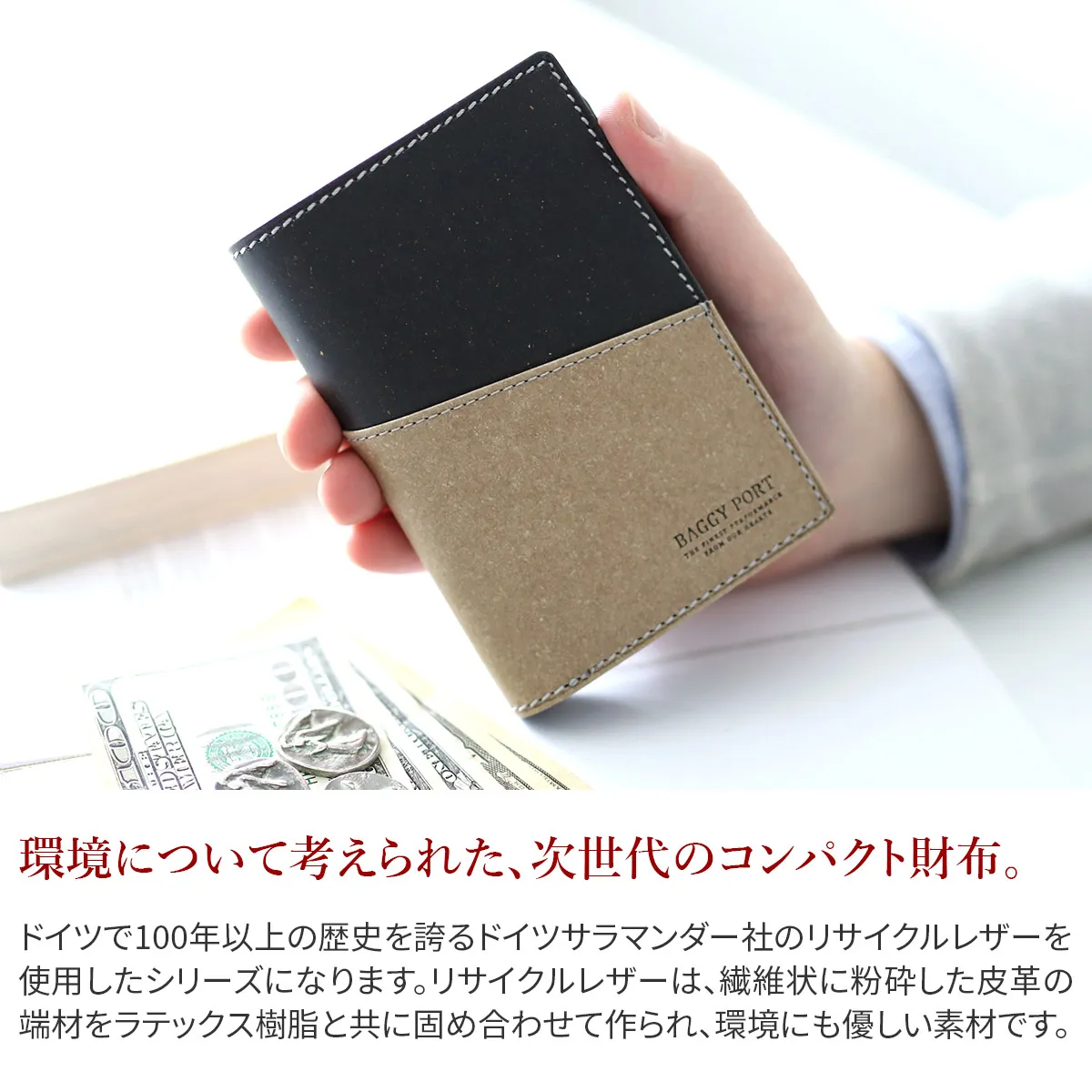 BAGGY PORT(バギーポート) リサイクルレザー 小銭入れ付き二つ折り財布 ZKM-602