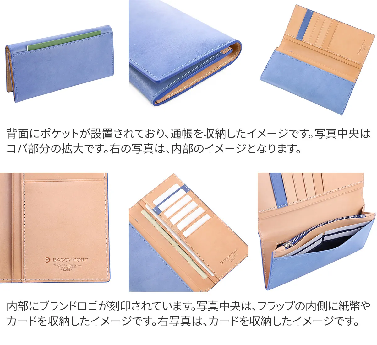 BAGGY PORT(バギーポート) 藍染レザー シリーズ 小銭入れ付き二つ折り長財布 ZYS-090 薄マチタイプでスマートに携帯できるロングウォレット シンプルなデザインで使い心地も快適