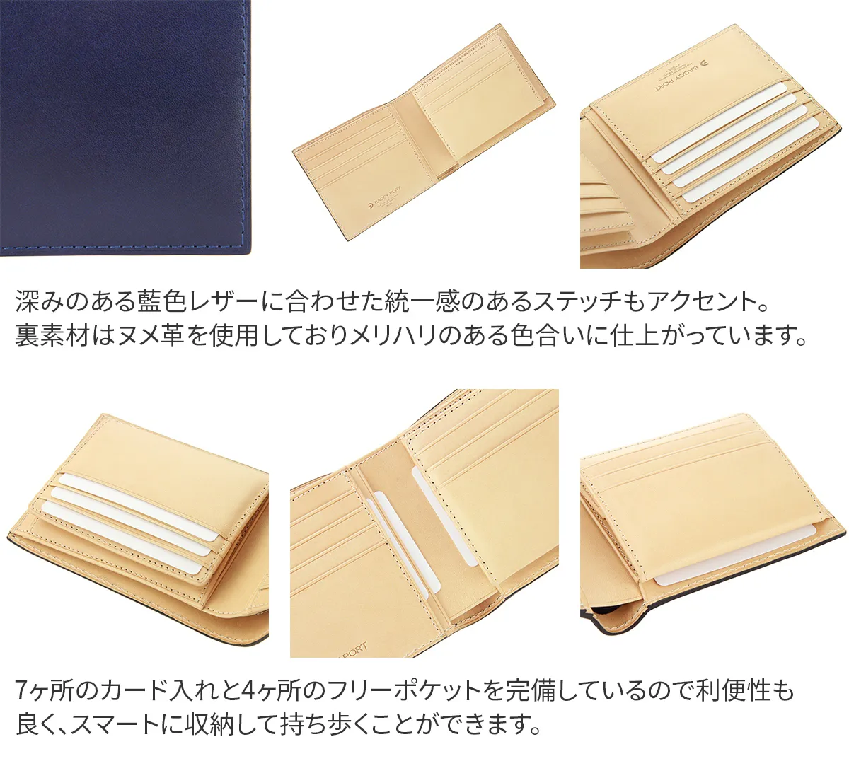 BAGGY PORT(バギーポート) 藍染めレザー シリーズ 小銭入れ付き二つ折り財布 ZYS-098 藍染レザーが目を惹く、スタンダードなレザーウォレット