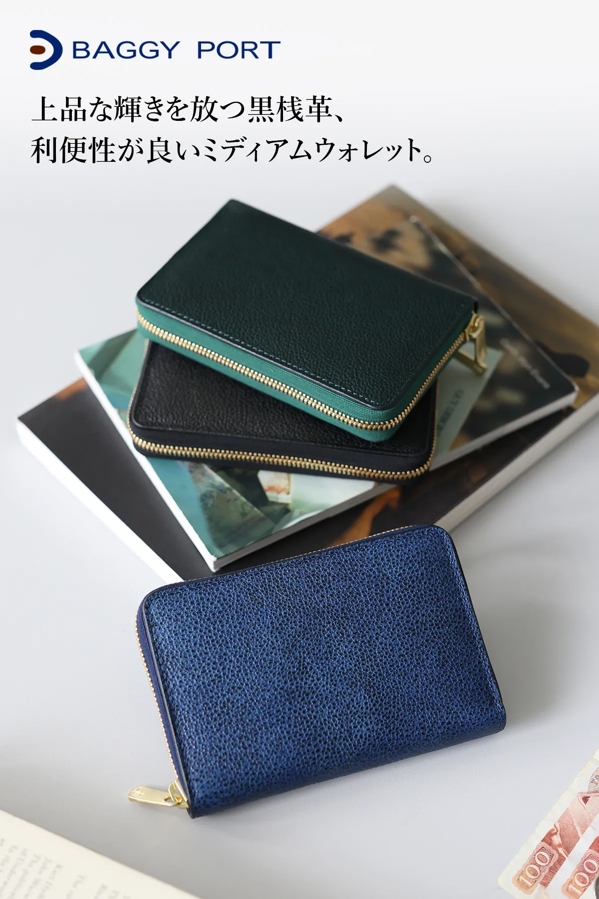 5. BAGGY PORT バギーポート KUROZAN 黒桟 小銭入れ付き二つ折り財布(ラウンドファスナー式 ) ZYS-391