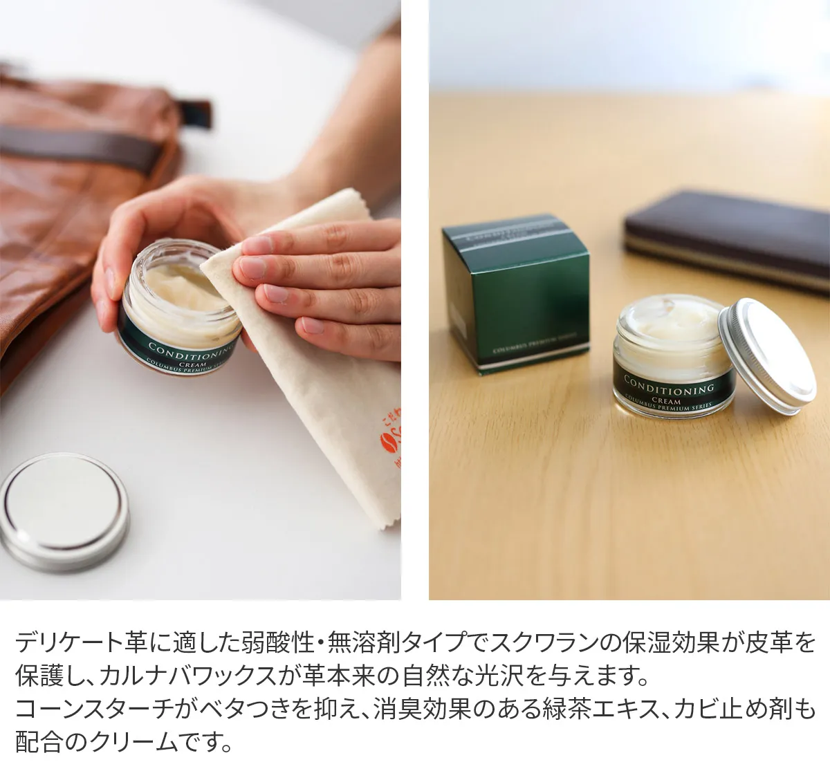 ■スクワランオイルが、皮革の潤いを保ちます。