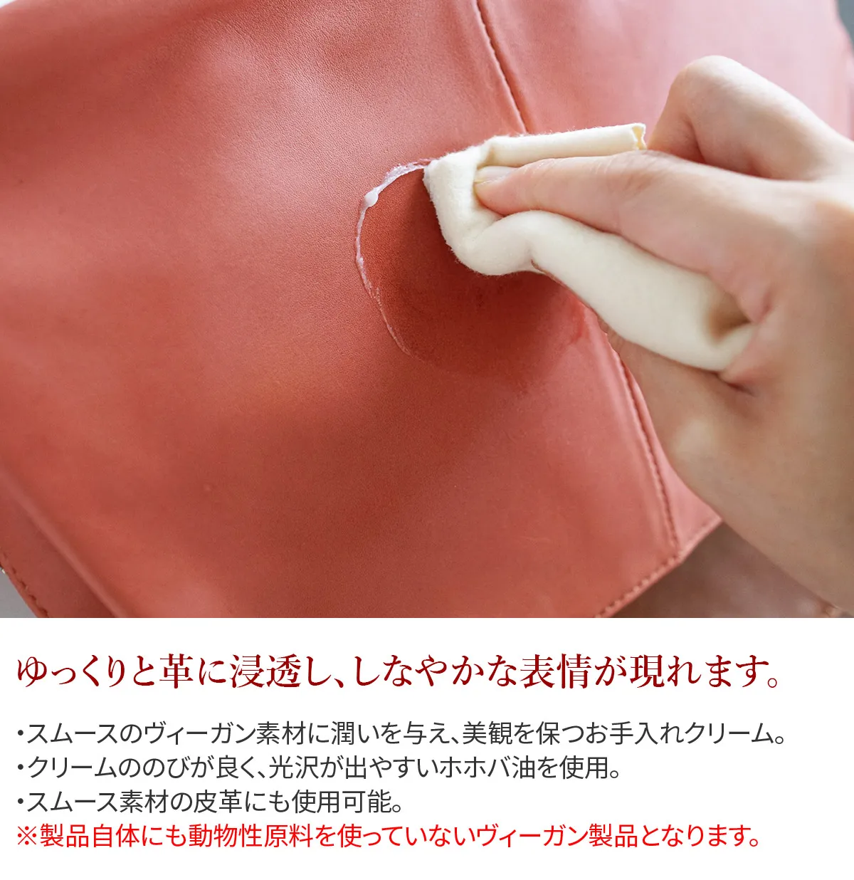 ・スムースのヴィーガン素材に潤いを与え、美観を保つお手入れクリーム