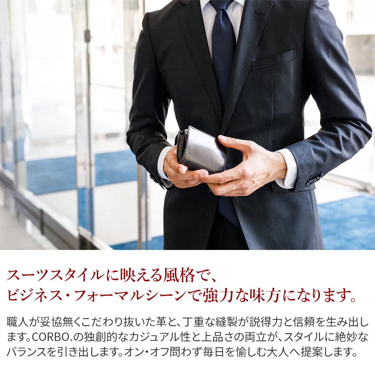 CORBO.(コルボ)-face Bridle Leather- フェイス ブライドルレザー シリーズ CORBO式BOX型 カードコインケース 1LD-0222 ボックス型で中身を取り出しやすい、 上質ブライドルレザーの小銭入れ!