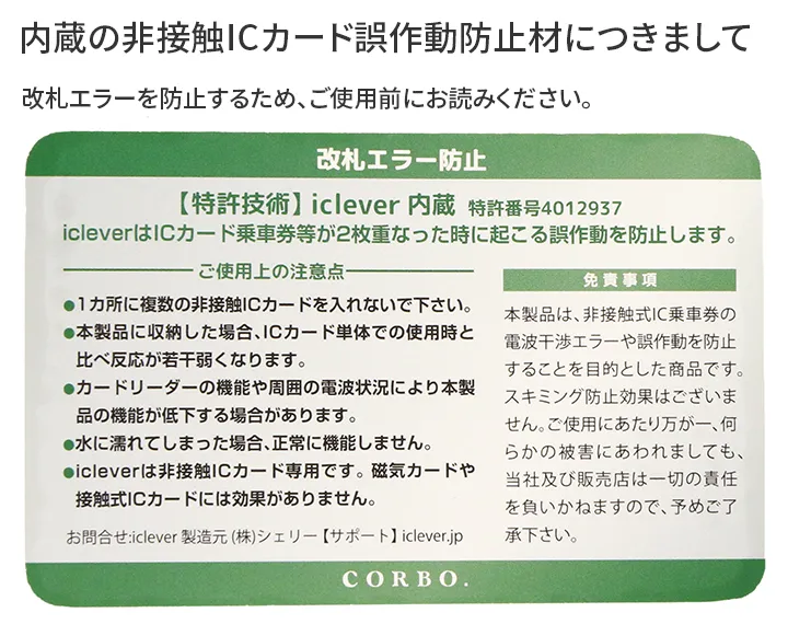これまで増やし続けてきたたくさんの荷物を減らし、本当に必要なモノだけを持ち歩きたい―。そんなライフスタイルに寄り添う、ミニマル財布。 1万円札サイズの紙幣が見た目の印象以上に収納出来ます。最背面のカードポケットとコインケース背面ポケットの裏には、非接触ICカード誤作動防止材を内蔵しており、非接触式ICカードの乗車券・定期券や電子マネーカードなどをレシーバーにタッチするだけでお使いいただけます。また、コインを使わない場合には、コインケース内にもカードが数枚収納可能です。