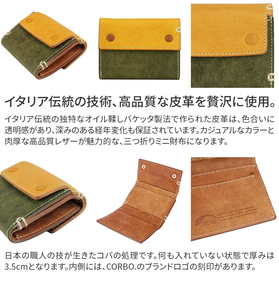 目を惹く色味と色の組み合わせは、灼けた赤土の大地や水たまりに静かに降る雨の波紋を感じさせまるで絵画の様です。 独立した小銭収納部は機能的な引き手があり、心地よい使い心地を感じられるかと思います。 イタリア伝統の独特なオイル鞣し『バケッタ製法』で作り上げた皮革は色合いに透明感があり味も腰もオイル感も絶妙で、 なによりもこの皮革の表情の変化は皮革らしい深みをもっています。使い始めてすぐに実感できるほど艶が出やすく、 色も深みを増していきます。