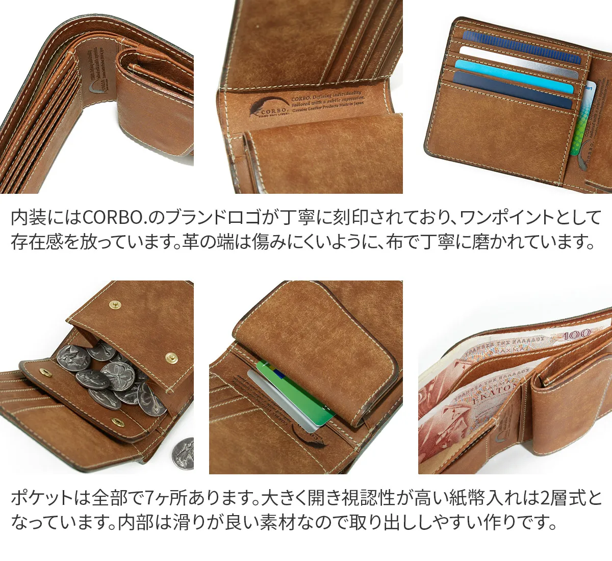 CORBO.(コルボ) SLATE PUEBLO スレート プエブロ 小銭入れ付き二つ折り財布 1LN-1701