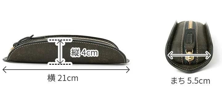 【プエブロレザーについて】 『イタリアで伝統的な製法として伝わるバケッタ製法によりベジタブルタンニン(植物の渋成分)によって鞣されたショルダーレザーを使用しています。一枚一枚金ブラシで表情をつけることで、手触りが良く、まるで和紙のような見た目と雰囲気が魅力。 経年変化も楽しめる皮革を使用しています。内装はカラーの違うプエブロを使用し、それぞれ色味の違う経年変化が楽しめます。革の端が傷みにくいよう一つ一つ布で手磨きを施し、灼けたような表情をつけています。 【内装のイタリアンオイルレザー Vacchetta Leather(バケッタレザー)について】 植物タンニン鞣しであるバケッタ製法。バケッタ製法とは、ケブラチョ、チェストナット(栗)、ミモザ(アカシア)などの木から抽出されるタンニンエキスを原皮の芯まで時間を掛けてしっかりと浸透させ 独自のレシピで調合された牛脂など天然成分のみのオイルをじっくりと加脂し乾燥にもゆっくりと時間をかけて皮革をなめす伝統的製法です。 加工には30日ほどの時間をかけるので、浸透しにくいオイルが隅々までしみわたり独自の風合いと腰、深みのある表情を生み出します。この皮革で作られた製品は、使いはじめてすぐに実感できるほど、味わい深い艶を増し タンニン鞣しならではの愛着の湧く色の変化を楽しんでいただく事ができます。 【縫製糸について】 綿糸を模したポリエステルスパン糸を採用しています。高強力で適度な伸度があるポリエステルフィラメントをコア(芯)にして、その周りを高級綿でカバーした糸です。長繊維(フィラメント)の周りに短繊維(スパン)を撚り合わせたそれぞれの特徴を活かした糸を採用しています。繊維の短い綿糸は毛羽立ちが手触りを柔らかくし温かみがあります。色移りなど有機的な印象が生まれます。しかし、摩耗に弱く切れやすい弱点もありますが、それをポリエステル芯が強度を補ってくれています。