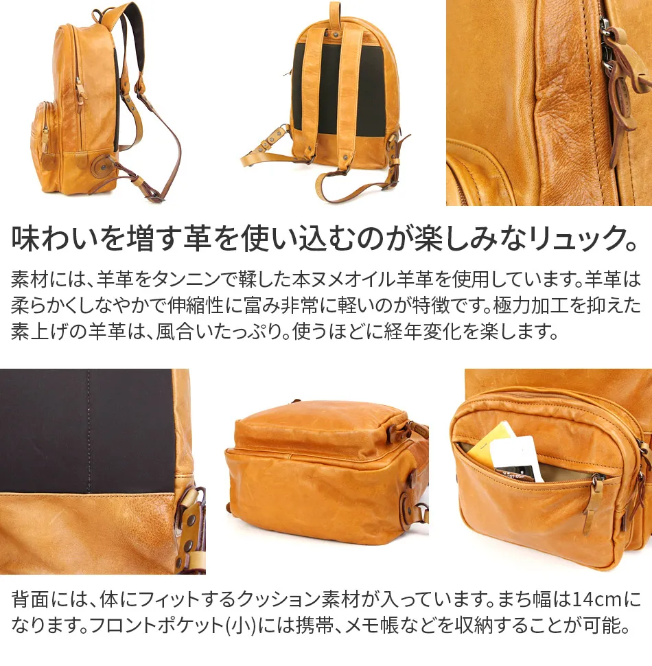CORBO.(コルボ) -SunDog-SHEEP- サンドッグシリーズ リュック 8KL-9691 味わいを増す素上げの羊革を贅沢に使用した、 使い込むのが楽しみなデイパックです。