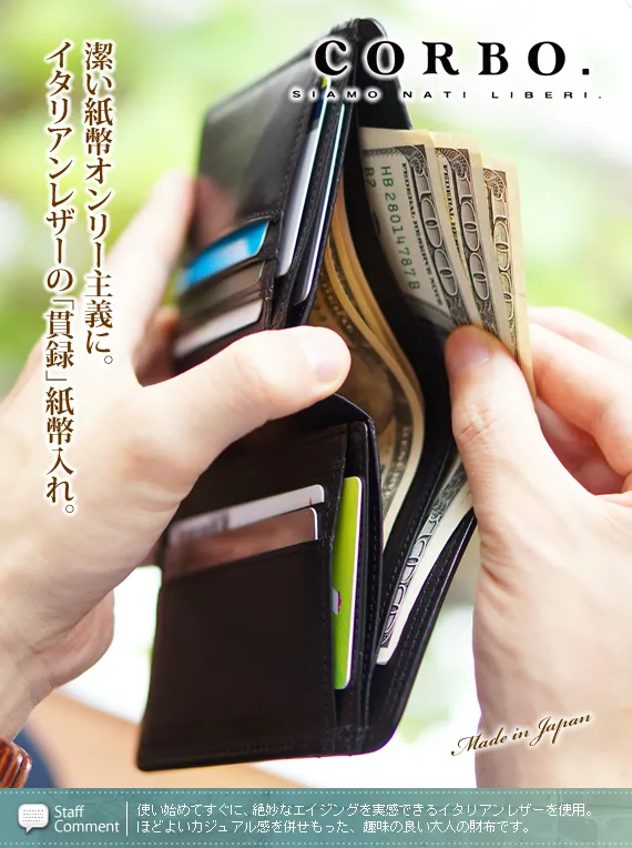 • CORBO. コルボ -SLATE- スレート シリーズ 純札(縦型) 2つ折り薄型財布 8LC-0401