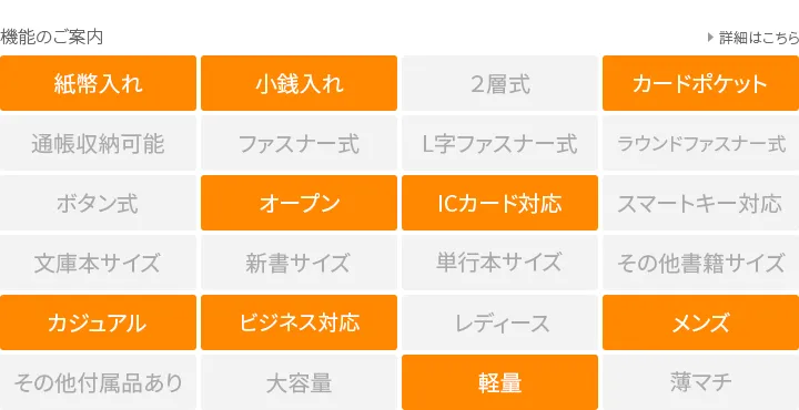 これまで増やし続けてきたたくさんの荷物を減らし、本当に必要なモノだけを持ち歩きたい―。そんなライフスタイルに寄り添う、ミニマル財布。 1万円札サイズの紙幣が見た目の印象以上に収納出来ます。最背面のカードポケットとコインケース背面ポケットの裏には、非接触ICカード誤作動防止材を内蔵しており、非接触式ICカードの乗車券・定期券や電子マネーカードなどをレシーバーにタッチするだけでお使いいただけます。また、コインを使わない場合には、コインケース内にもカードが数枚収納可能です。