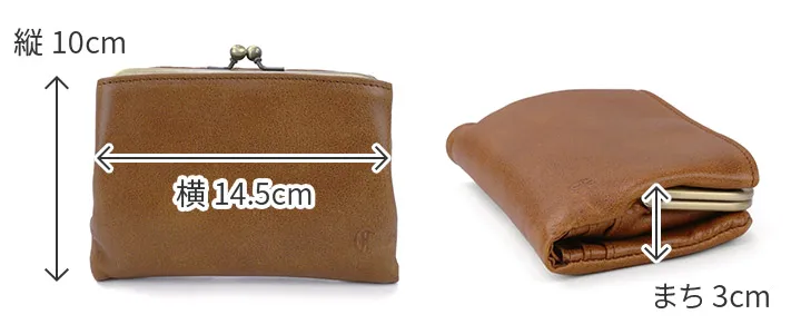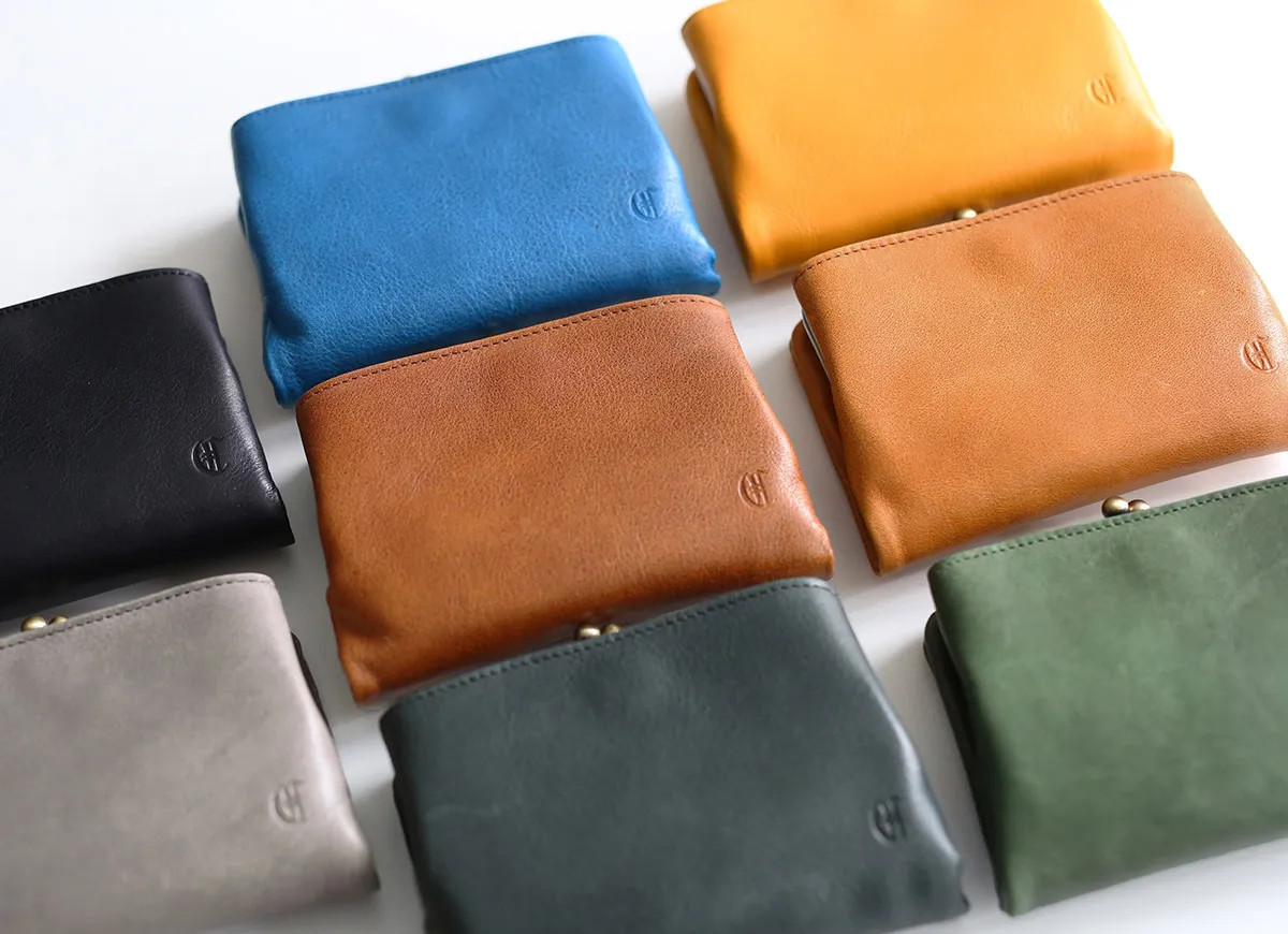 やわらかくしっとりとしたオイルレザーが手に心地よくフィット。お使いいただくほど、艶や色合を深め味のある表情へと変化していきます。ポケット豊富で使い勝手の良さに満足のいく二つ折り財布です。 外側にボタン式ポケットが備わり、ショップカードやレシートなどを収納していただくのに便利です。小銭入れは大きく開き、硬貨が見やすく出し入れしやすいがま口開閉です。また、使用頻度の高いカードを一枚入れておくのに便利なカードポケット付きです。 メイン収納室はボタン開閉でカードを最低13枚収納可能です。お札入れは2ヶ所あるので、紙幣を種類によって分けたり、レシートと分けたりして収納していただけます。