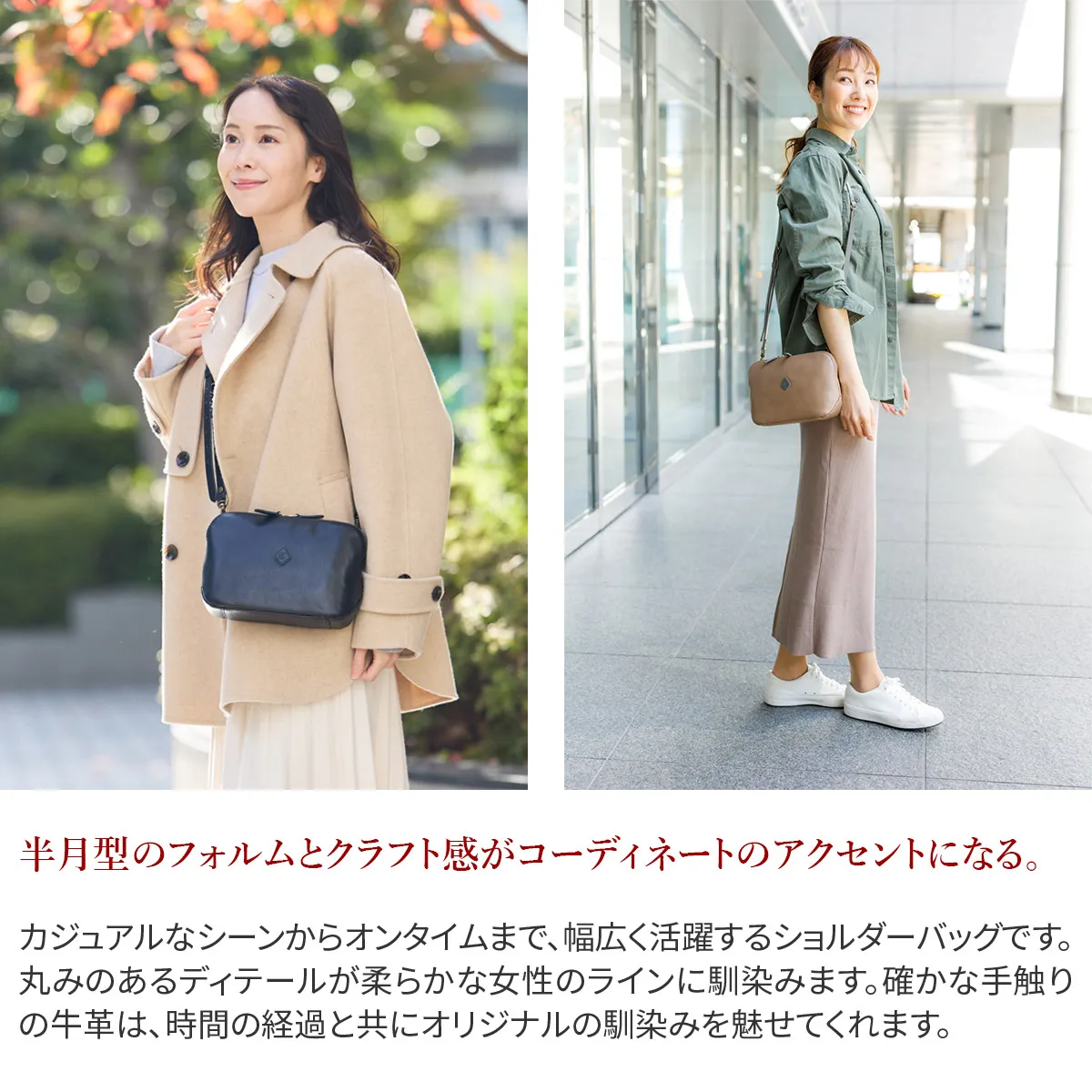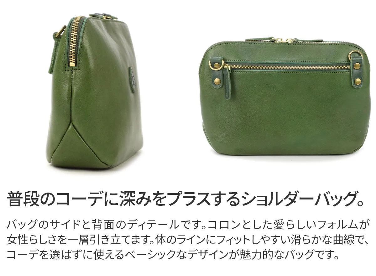 コロンとしたフォルムが特徴の愛らしいお財布ショルダーバッグです。 内側にはカード入れやポケットが充実しているので、貴重品をまとめて収納していただけます。 ショルダーベルトは取り外しが可能なので、コーデに合わせてアレンジをお楽しみいただけます。 確かなタッチ感の上質な牛革は、時間の経過と共にオリジナルのエイジングを魅せてくれます。