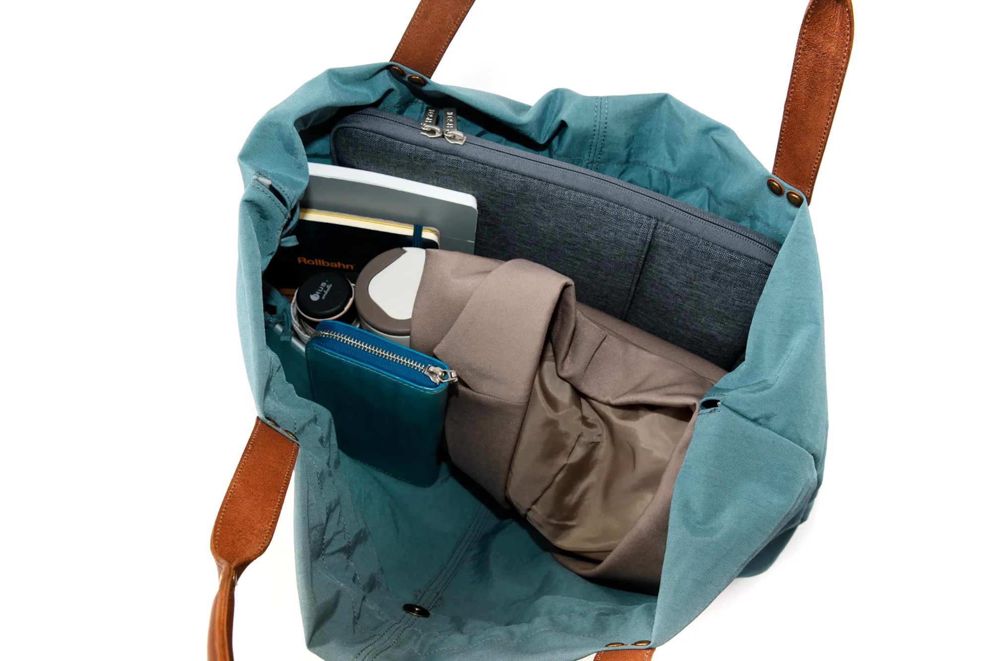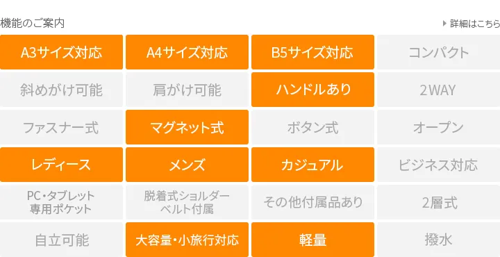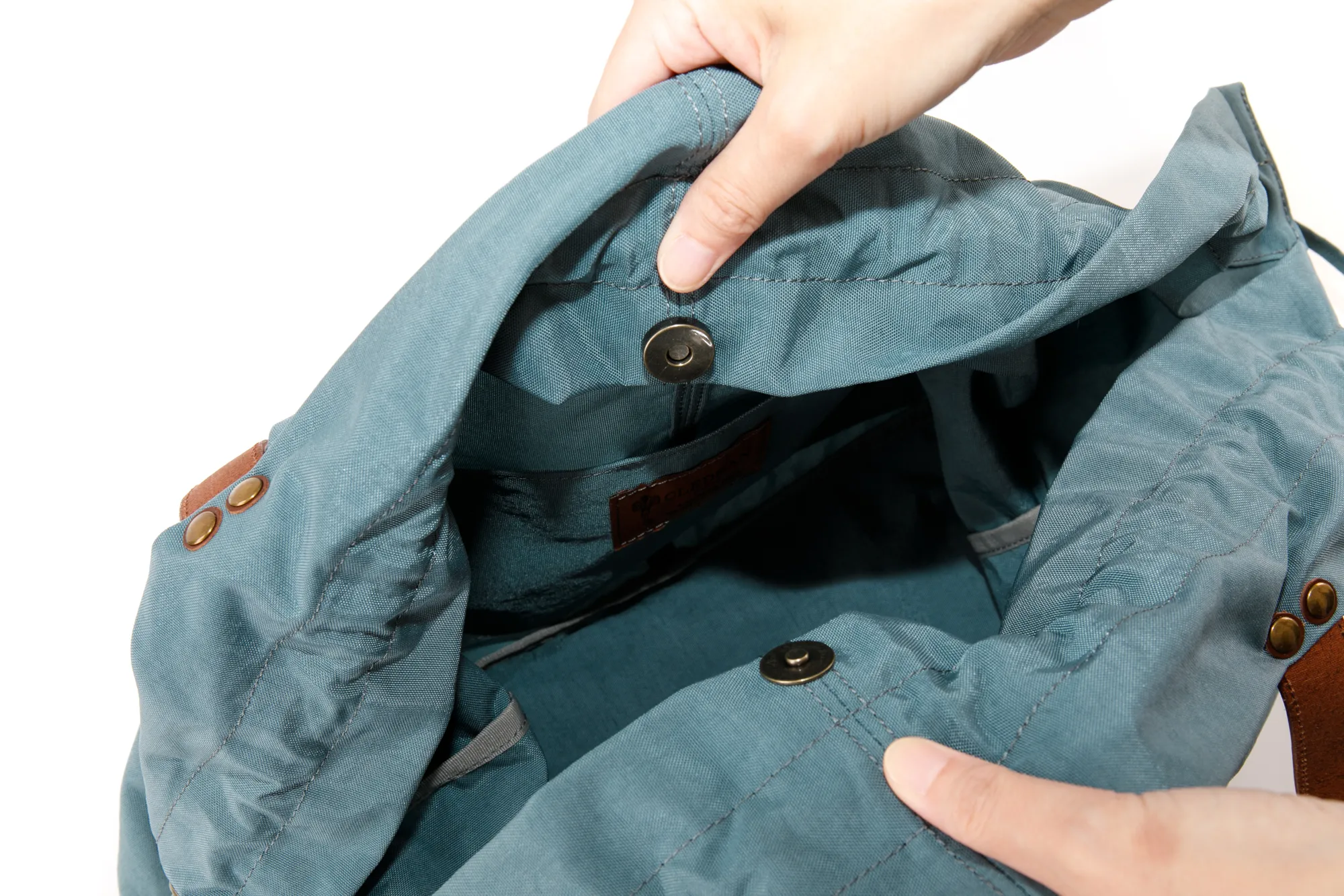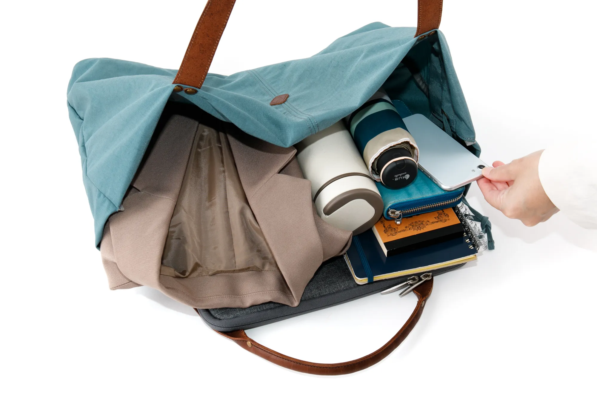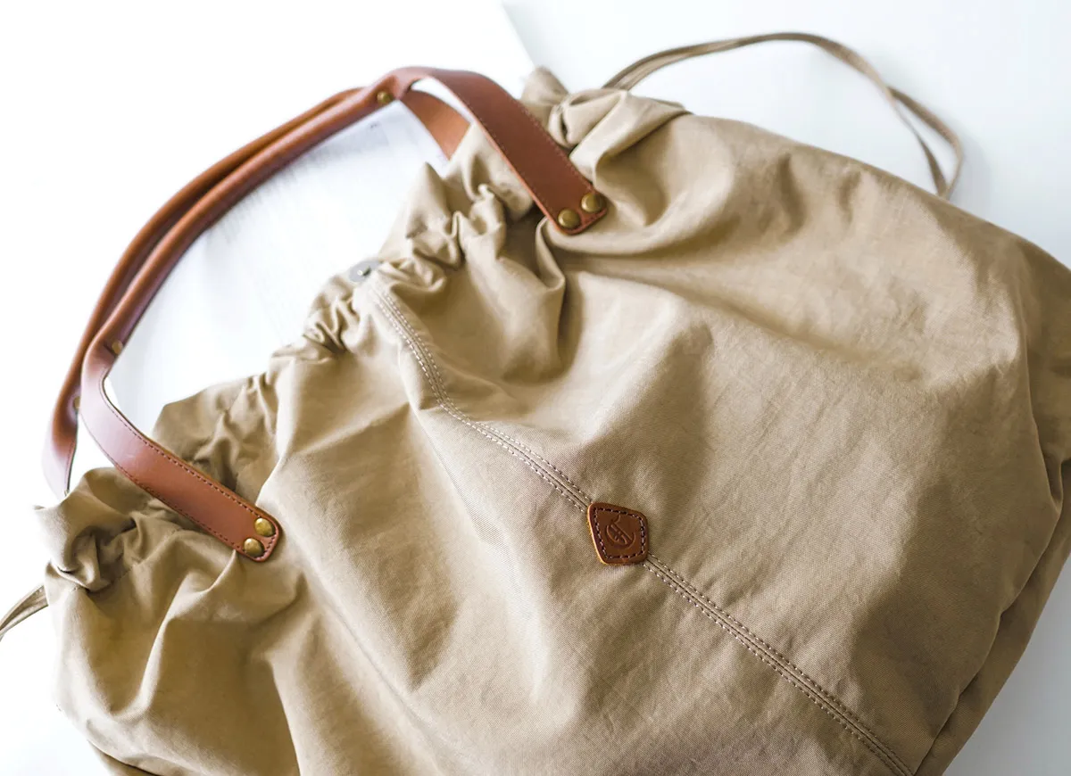 A3サイズ対応可能でたっぷり収納ができるトートバッグです。 ナイロン素材で本体の軽量化を図り、革の持ち手で肩への負担も軽減されています。 シンプルな外観ですっきりとした印象なので、通勤・通学から休日スタイルに合わせやすいバッグです。