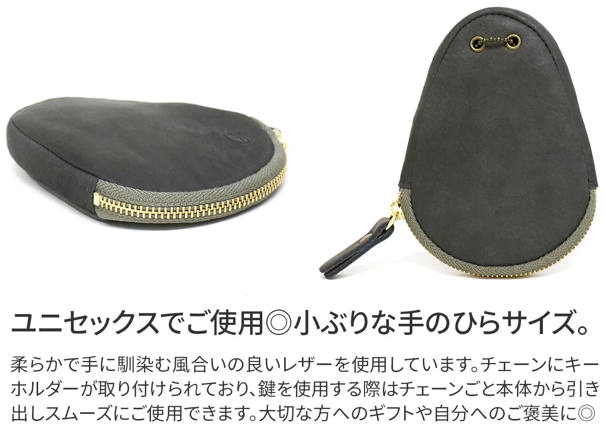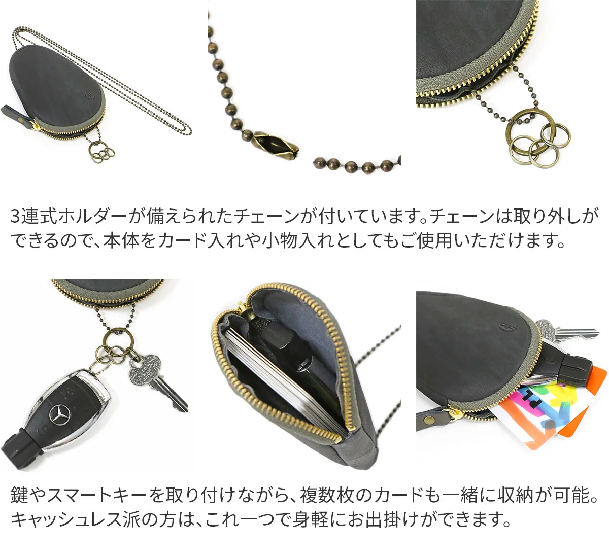 軽量でフワッと柔らかなレザーが特徴的なキーケース。小ぶりなサイズ感ですが、鍵を3つ取り付けられる他、カードやリップ等の小物類も収納ができます。コンビニやちょっとしたお出掛けに重宝する、コンパクトで愛らしいデザインのアイテムです。
