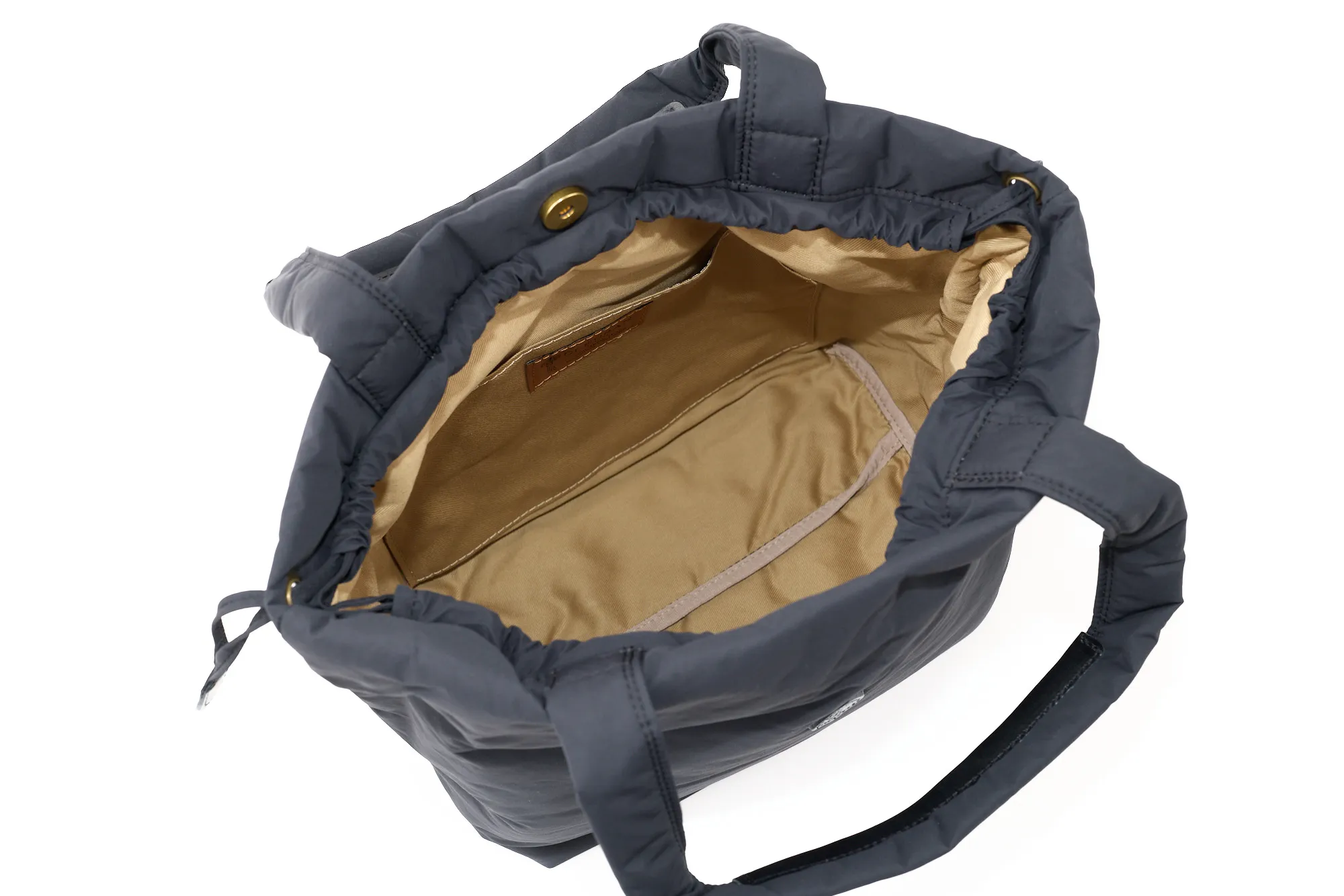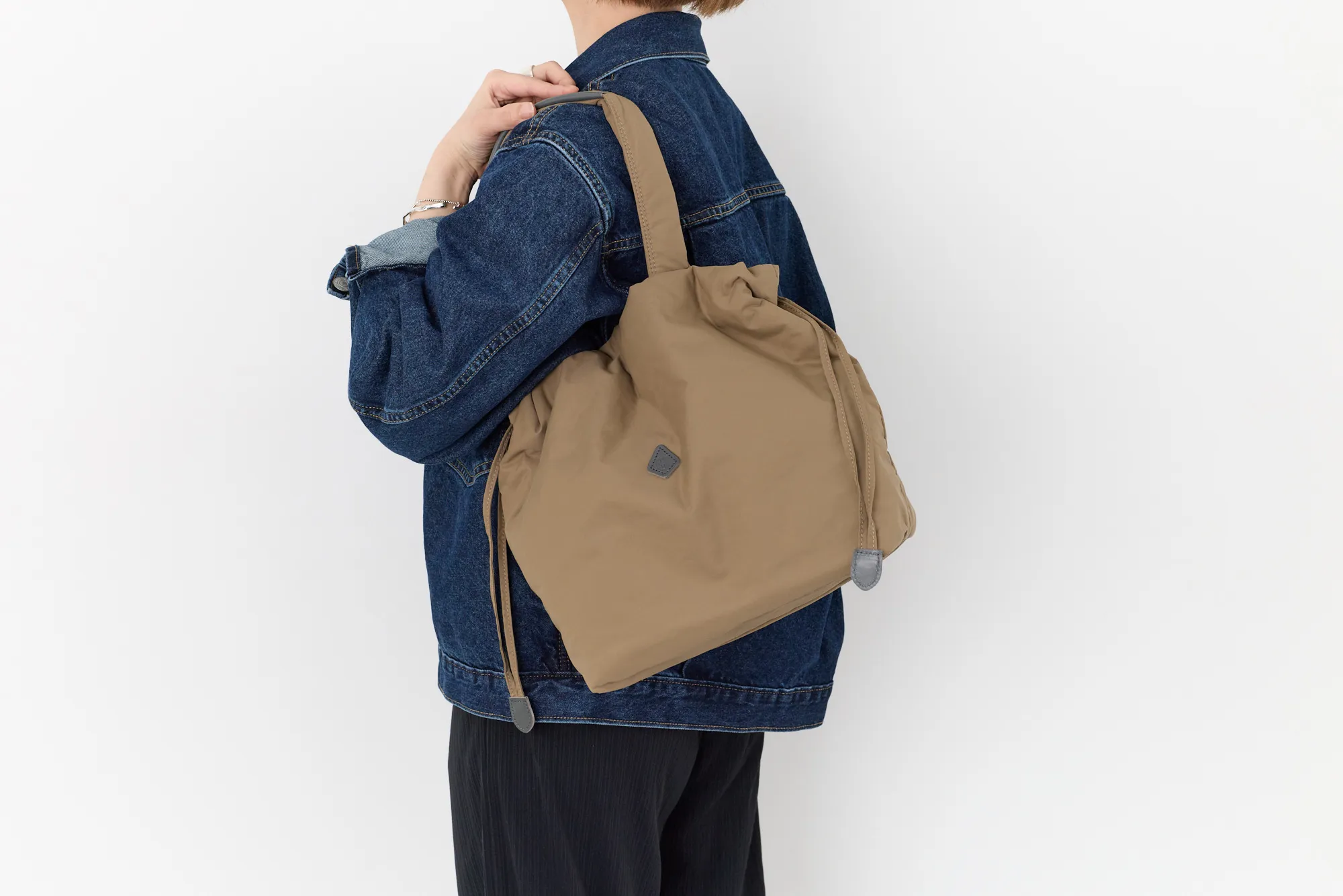 ふかふかした心地よいタッチ感のナイロンを使用した巾着トートバッグです。 日常使いに頼れるB5サイズ対応で、普段のお出かけやお買い物にも軽快にお持ちいただけます。 開口部にマグネットを備えているので、口元の巾着を絞らなくても開閉ができ、防犯面でも安心の設計です。 軽量なので、レジャーや旅先でのサブバッグとしても活躍してくれそうです。