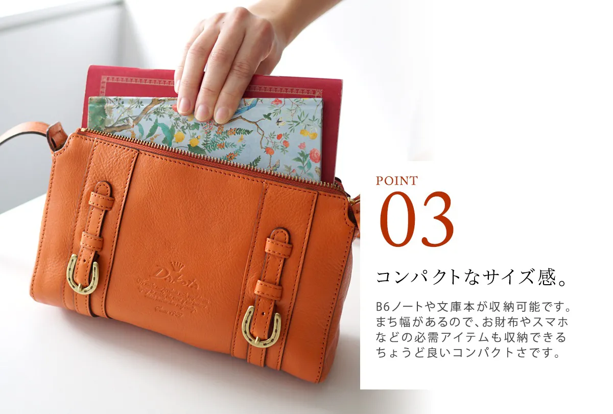 小振りなサイズがかわいらしいショルダーバッグ。ダコタで70年代に作られたバッグのリバイバルで、レトロな雰囲気をお楽しみいただけます。 コンパクトな小さなフォルムですが、充実したポケット完備で使い心地の良いデザインとなっております。軽くて持ちやすく、馬蹄型のパーツなど細部までこだわりの感じられるショルダーバッグです。