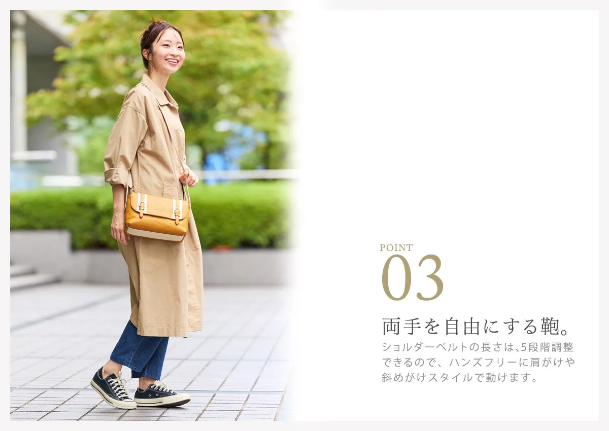 毎日持ちやすいデザインと、A5サイズの書類などが入るサイズ感で、カジュアルな通勤や通学、お出かけなど様々なシーンにおすすめ。当店限定カラー(別注)のご用意もございます。
