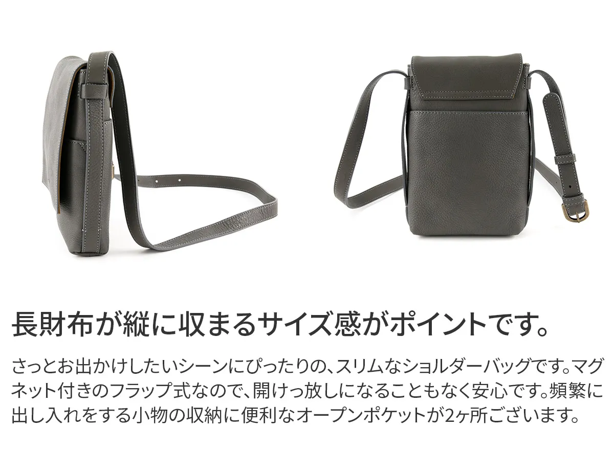 ソフトで上質感のある風合いが特徴のシリーズです。素材感を生かしてシンプルで飽きのこないデザインにしました。大人カジュアルとしてデイリーにご使用いただけます。 しっとりと柔らかな手触りと、ベーシックなフォルムが特徴のショルダーバッグです。どんなスタイルにも優しく馴染む、ナチュラルな色合いが目を惹きます。普段使いはもちろん、旅行のサブバッグにおすすめのデイリーアイテムです。